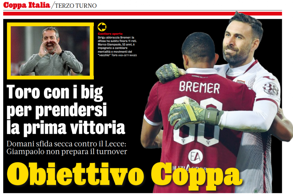Si avvicina l’ora del fischio d’inizio di Torino-Lecce di Coppa Italia, gara che verrà arbitrata dal signor Piccinini di Forlì e che verrà trasmessa su Rai Sport. Chi vince troverà l'Entella che ha eliminato nel pomeriggio il Pisa. Sarà una gara nella quale i salentini arrivano sfavoriti, ma che può riservare comunque delle sorprese. In vista del match Corini pare intenzionato a schierare un 4-3-1-2.
