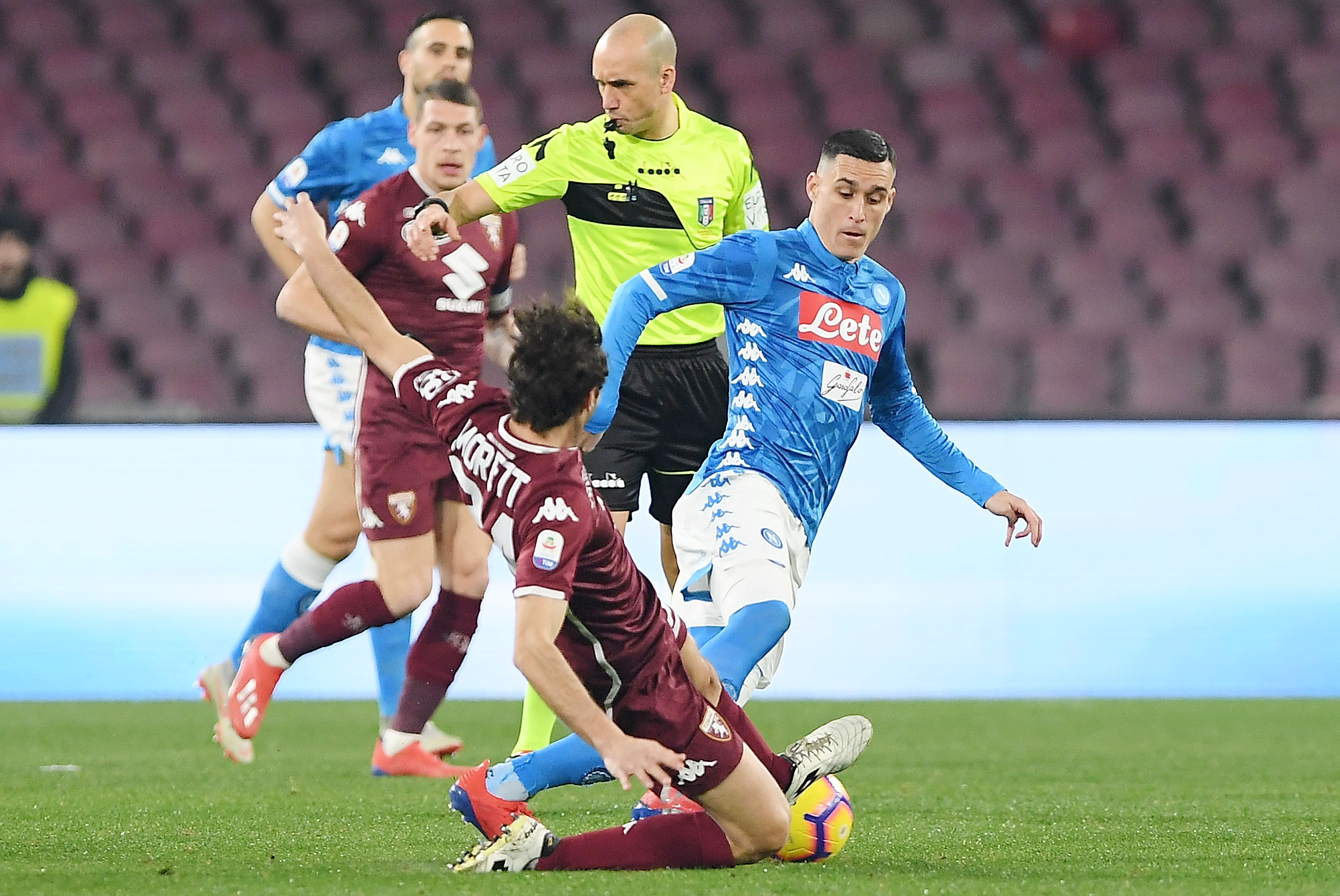 MORETTI 6: va in grande difficoltà nella marcatura su Milik, che nel primo tempo non trova il gol solo per questione di centimetri. Nel finale di primo tempo bravo a contrastare Fabian Ruiz al tiro. Per un contatto prolungato con il centravanti polacco si prende un giallo nella ripresa. Anche lui cresce col passare dei minuti: alla fine in qualche modo regge.
