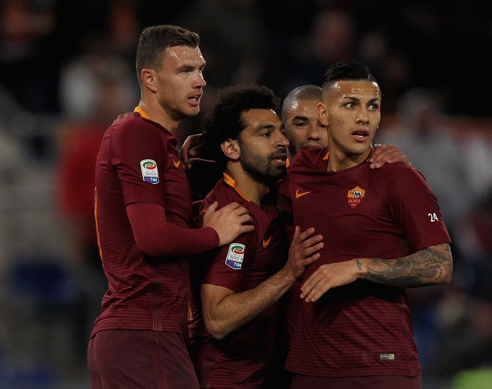 Roma (3-4-2-1): Szczesny 6; Manolas 6.5(28' st Vermaelen), Fazio 6.5, Juan Jesus 6.5; Peres 6, Paredes 7, Strootman 6 (32' st Totti ng), Emerson 6; Salah 7, Nainggolan 6.5; Dzeko 7 (44' st Perotti ng). Allenatore: Spalletti.
