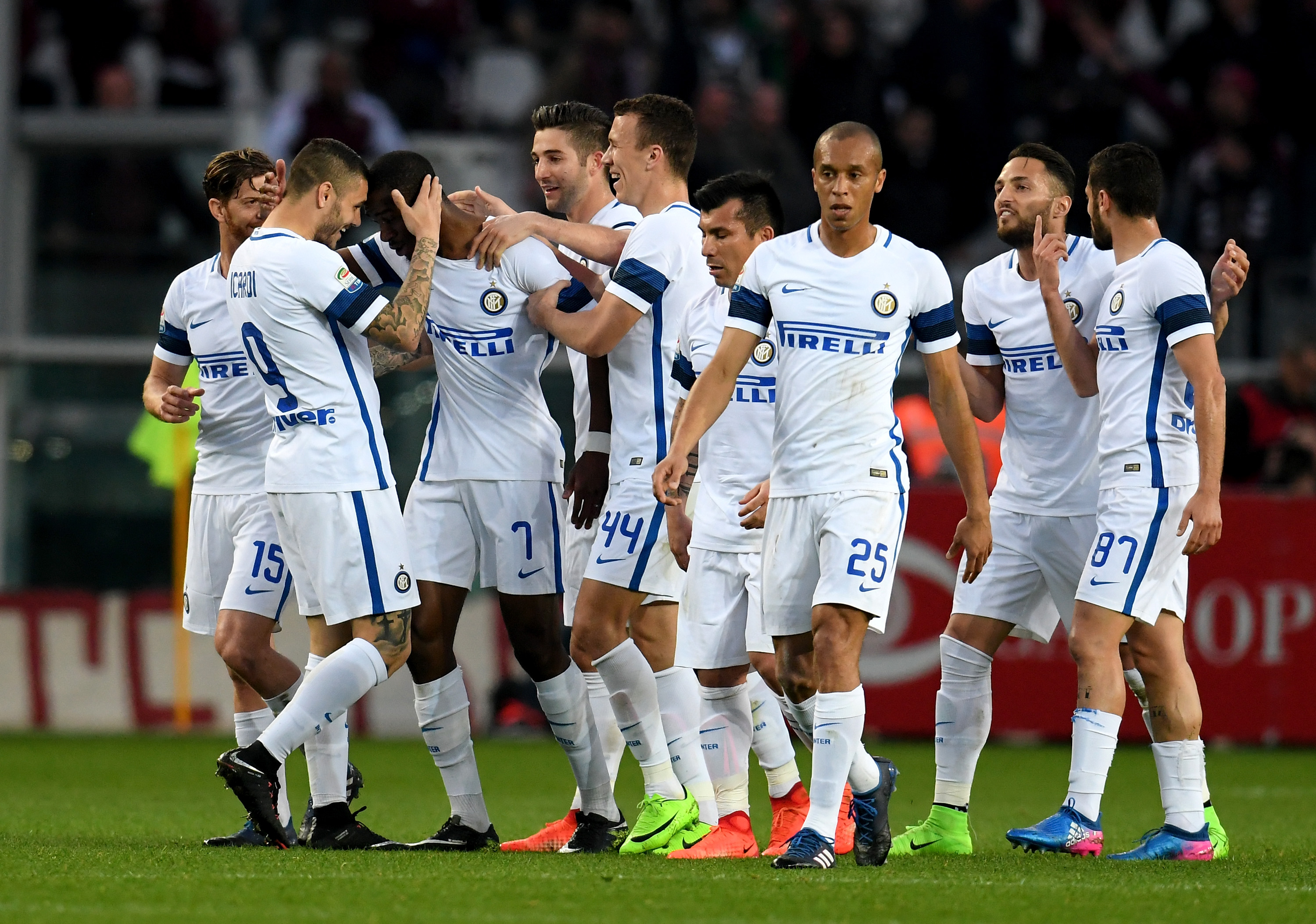 Inter (4-2-3-1): Handanovic 6.5; D'Ambrosio 6, Medel 6 (14' st Murillo 6.5), Miranda 6, Ansaldi 6; Kondogbia 6.5, Gagliardini 5.5; Candreva 6.5, Banega 5.5, Perisic 5; Icardi 5.5. A disposizione: Carrizo, Andreolli, Joao Mario, Palacio, Biabiany, Sainsbury, Santon, Eder, Murillo, Nagatomo, Brozovic, Barobosa. Allenatore: Pioli.