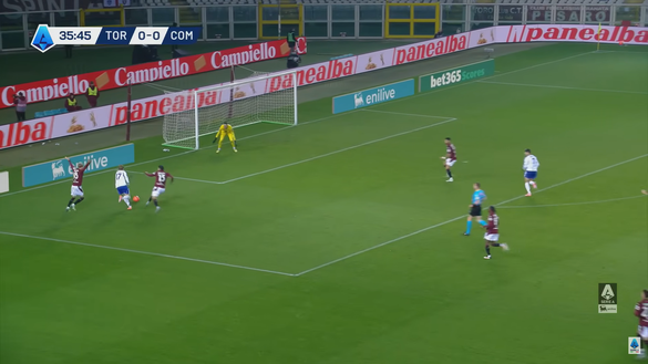 L'azione si conclude amaramente per il Torino con l'uscita corretta sul primo palo di Paleari ma con l'area coperta malissimo dagli altri difensori granata. Nell'immagine 5 si nota già infatti sul secondo palo un Lazaro disattento che si fa sfuggire Addai.