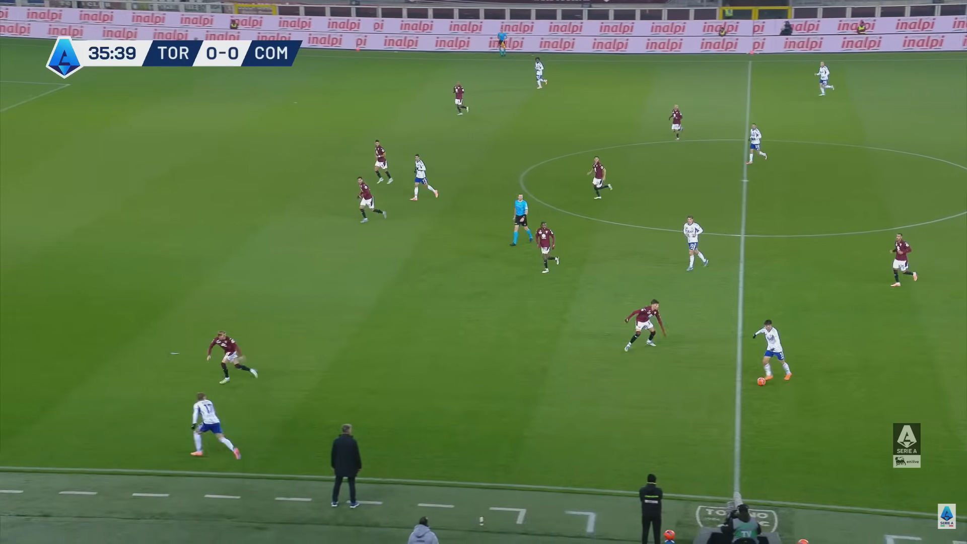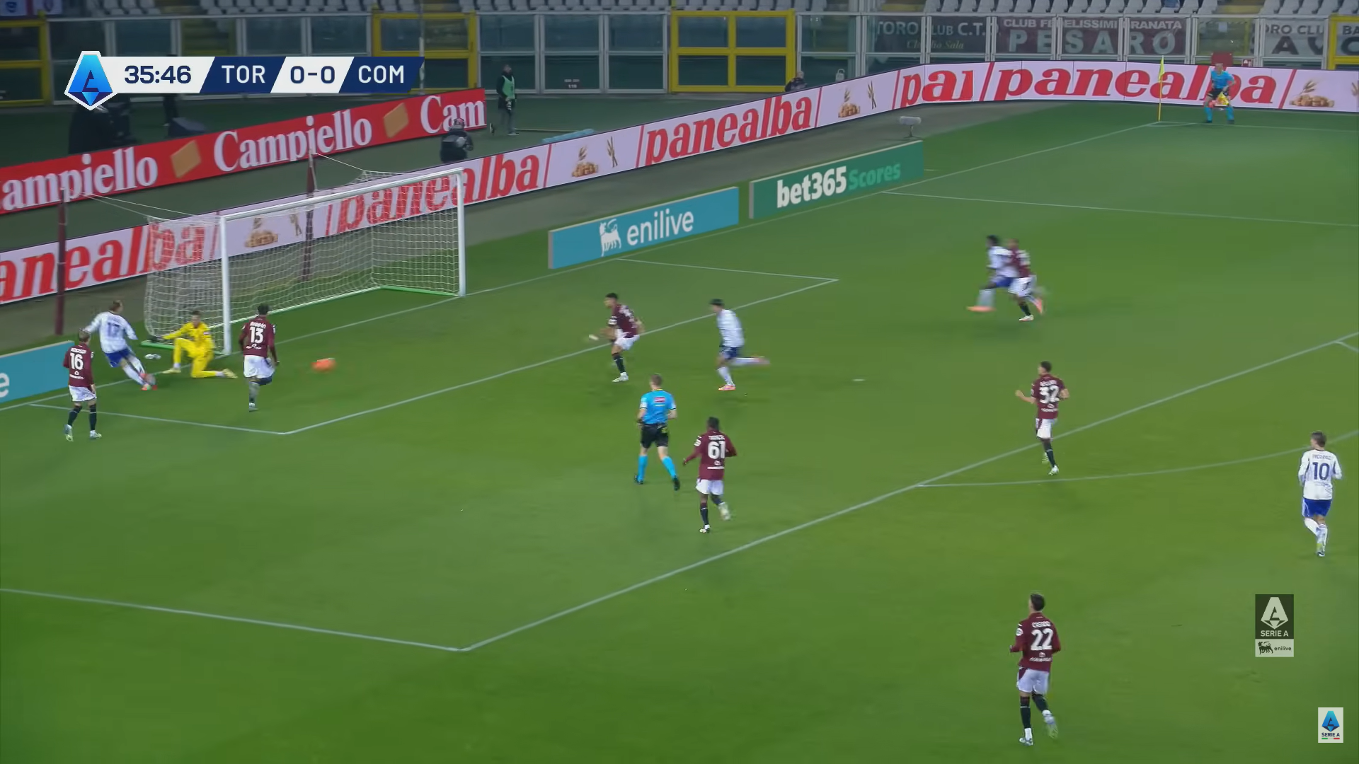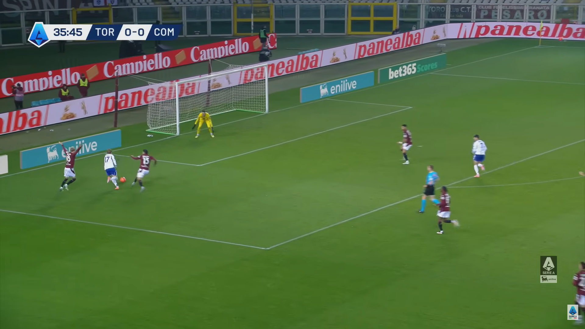 Ed è proprio Addai che si smarca in mezzo all'area (immagine 6) per ricevere il passaggio basso di Rodriguez e spingere facilmente la palla nella porta vuota per il vantaggio del Como al 36' del primo tempo.