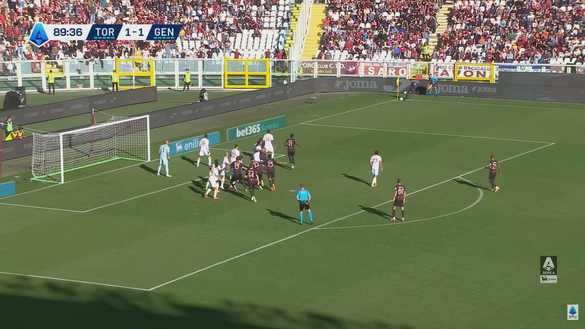Nell'immagine 2 si nota come ci siano Maripan e Ismajli con un solo giocatore del Genoa a marcarli: qui la retroguardia di Vieira ha commesso un grave errore lasciando due dei difensori centrali granata quasi del tutto smarcati.