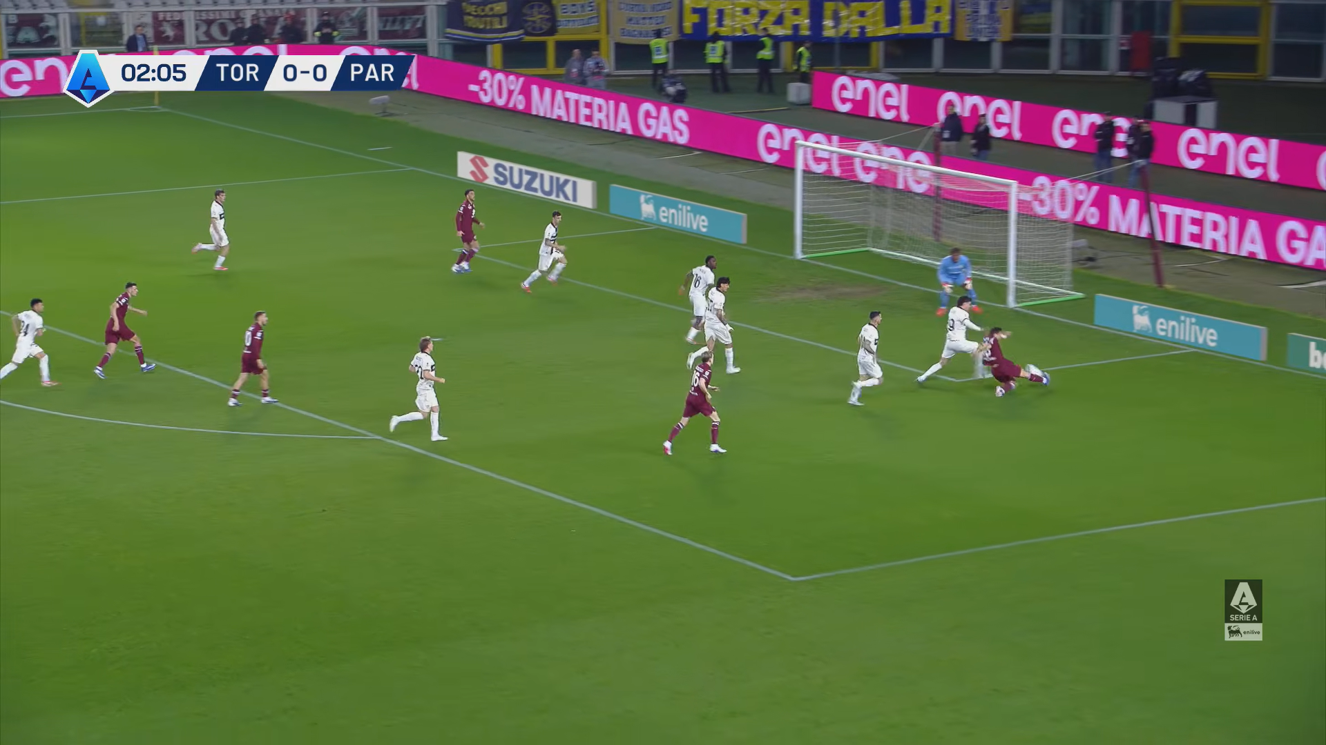 Il numero 6 granata batte corto il corner e serve Gineitis. Il centrocampista lituano fa partire un buon cross con il suo piede mancino (immagine 2) verso il centro dell'area ma la palla viene deviata dalla difesa del Parma.