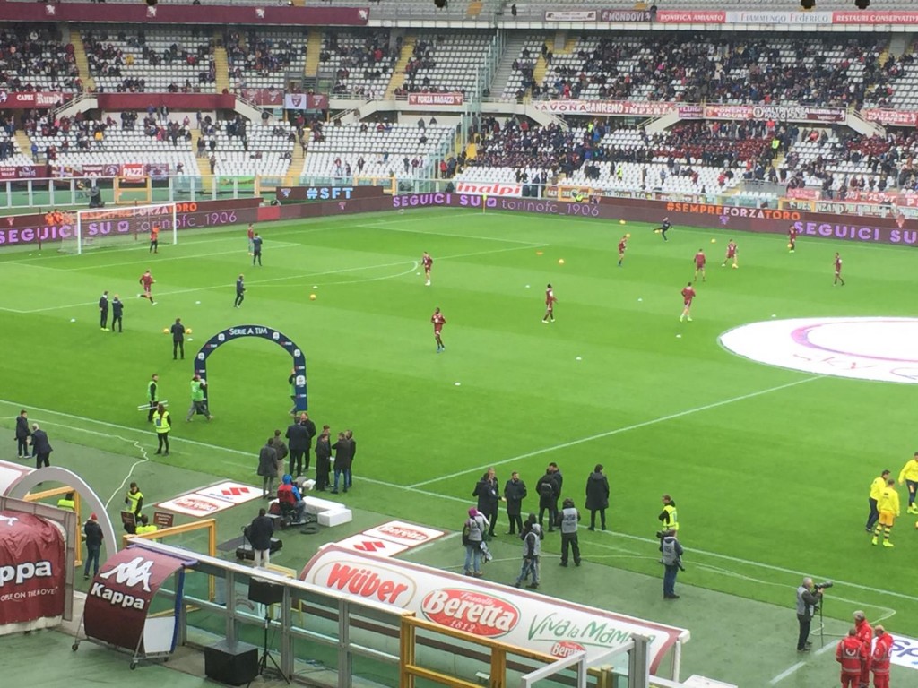 14.28 - Entra il Torino per il riscaldamento, applausi dei tifosi