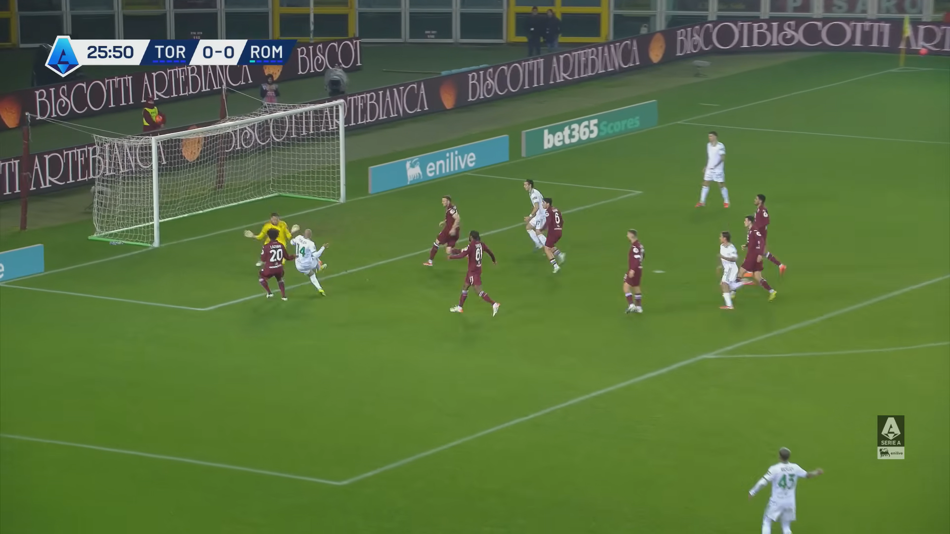 Il gol dello 0-1 in Roma-Torino: tempismo sbagliato di Tameze