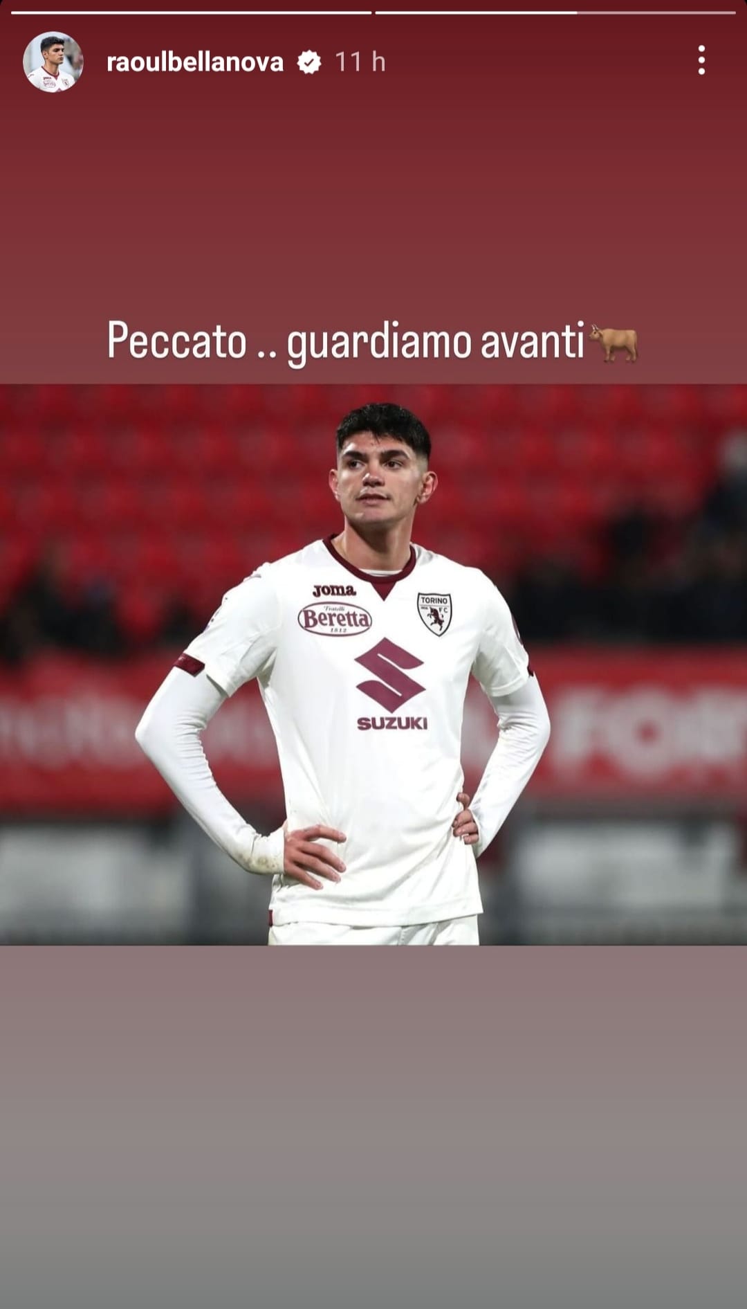 "Peccato...guardiamo avanti". Non manca nemmeno l'intervento di Bellanova, stavolta tramite una storia su Instagram. L'esterno ex Cagliari e Inter mastica amaro per una gara in cui il Torino poteva portare a casa l'intera posta in palio.
