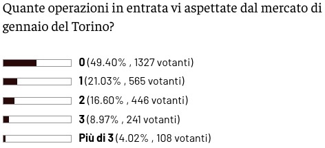 I risultati del sondaggio su quante operazioni farà il Torino nella sessione invernale di mercato