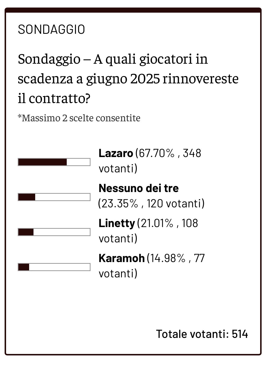 Il sondaggio di TN ha decretato il giocatore più apprezzato tra quelli in scadenza: Lazaro domina, ma ecco come sono andati gli altri