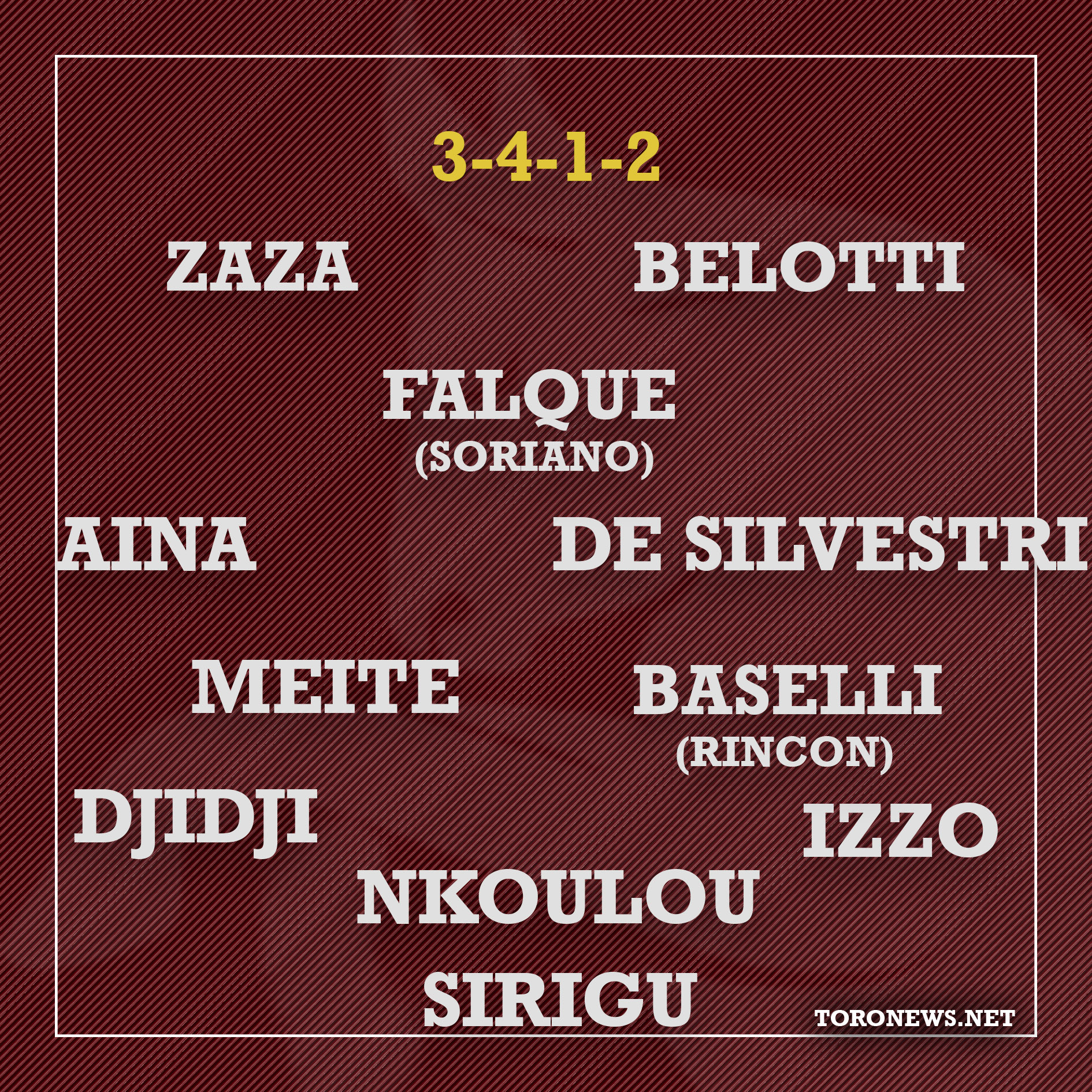E' il modulo dei sogni di ogni tifoso granata, perché (sulla carta) permette di schierare tutti i tenori offensivi, mantendo comunque intatta la struttura tattica della difesa a tre. Utilizzato da Mazzarri solo a gara in corso, ad oggi non pare essere ancora funzionare al meglio, con la presenza contemporanea di Zaza, Belotti e Iago che non è ancora digerita dai meccanismi della squadra a livello tattico.