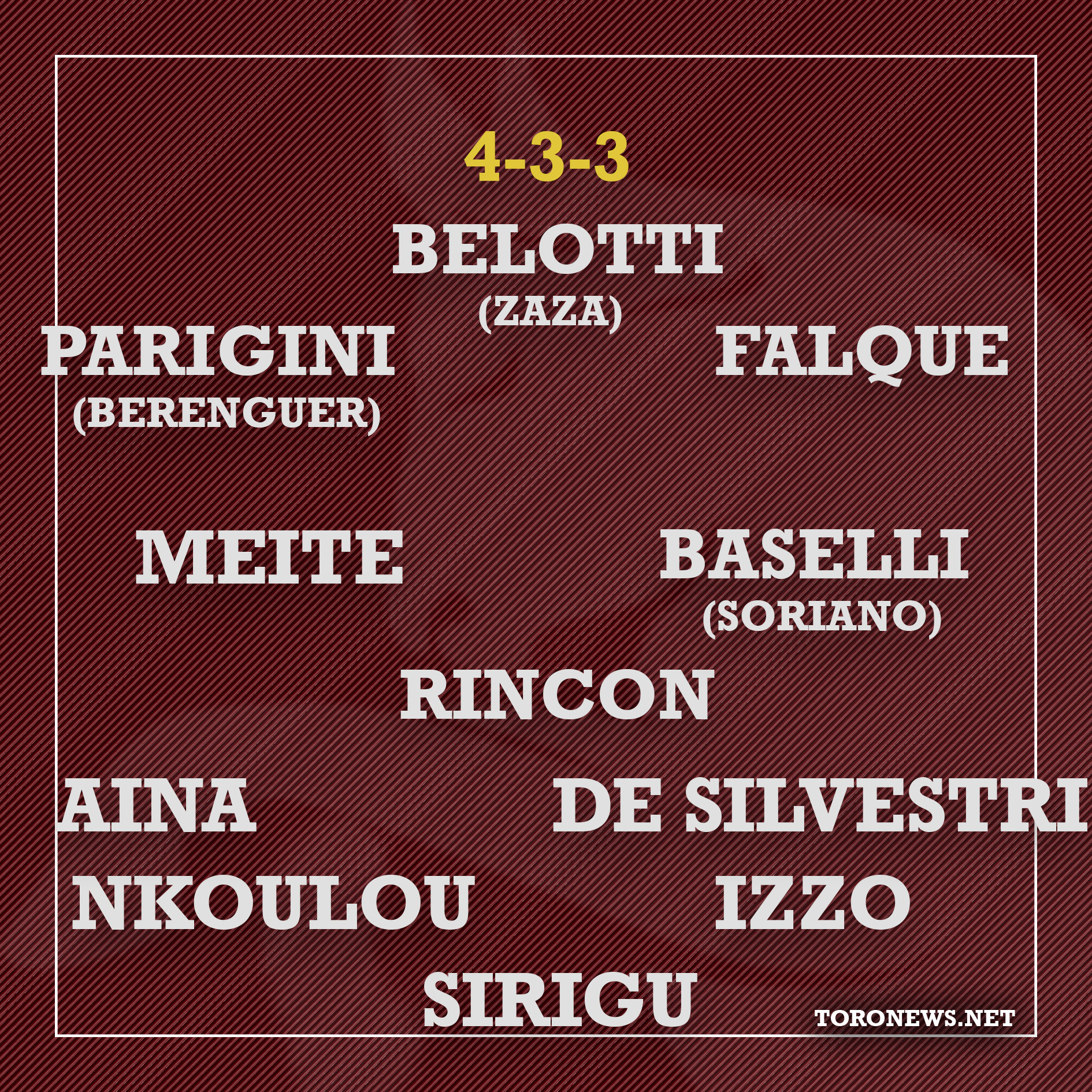 Qui si tratta davvero di fantasia: mai utilizzato quest'anno, il 4-3-3 è stato il modulo principale del primissimo Mazzarri granata, raccogliendo l'eredità di Mihajlovic. Difficile che venga utilizzato, me se così fosse, la formazione tipo potrebbe essere circa questa.