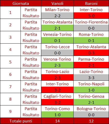 Dalla tabella qui sopra si possono iniziare a fare alcuni confronti: i due allenatori hanno perso un numero uguale di partite (tre), ma Vanoli ne ha pareggiate soltanto due, vincendo le altre quattro, mentre Baroni ha ottenuto pareggi e vittorie in misura pari alle sconfitte. Così ne si ottiene un quadro che vede il Torino di Vanoli a quota 14 punti dopo nove giornate e il Torino di Baroni, invece, a quota 12 punti dopo nove giornate. Entrando nello specifico si vedono, però, due trend diametralmente opposti: il Torino di Vanoli ha fatto le prime cinque gare senza sconfitte, raccogliendo 11 punti e trovandosi, dopo la quinta giornata, primo in classifica in solitaria. Nelle quattro partite successive, però, ha trovato soltanto una vittoria e tre sconfitte, peggiorando incredibilmente la media punti. Al contrario, il Torino di Baroni è partito male, raccogliendo soltanto quattro punti nelle prime cinque sfide, ma ha poi trovato una quadra ottenendo, in queste ultime quattro, ben otto punti. Praticamente mettiamo a confronto un'Abarth e una Giuletta, con la prima leggera e scattante ma che sul lungo perde rispetto alla seconda che ha una velocità di punta maggiore. Ma al di là di questo, va analizzato anche il peso delle vittorie: Vanoli ha vinto contro Atalanta, Venezia, Verona e Como: solo una di queste squadre nella stagione precedente era arrivata in Europa. Baroni dall'altra parte ha vinto contro Roma, Napoli e Genoa: due su tre nella scorsa stagione hanno raggiunto la qualificazione alle coppe europee, e una addirittura è la formazione campione d'Italia. Il peso delle vittorie depone a favore dell'attuale tecnico granata. Quello che va a scagionare Vanoli è, però, un altro aspetto...
