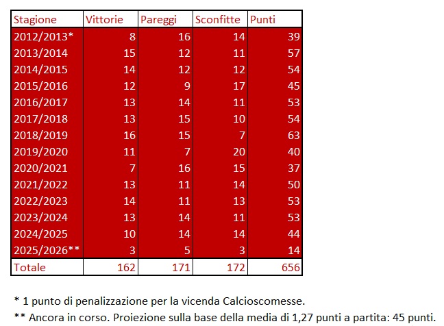 I dati sui risultati ottenuti dal Torino nelle ultime 14 stagioni sono allarmanti...