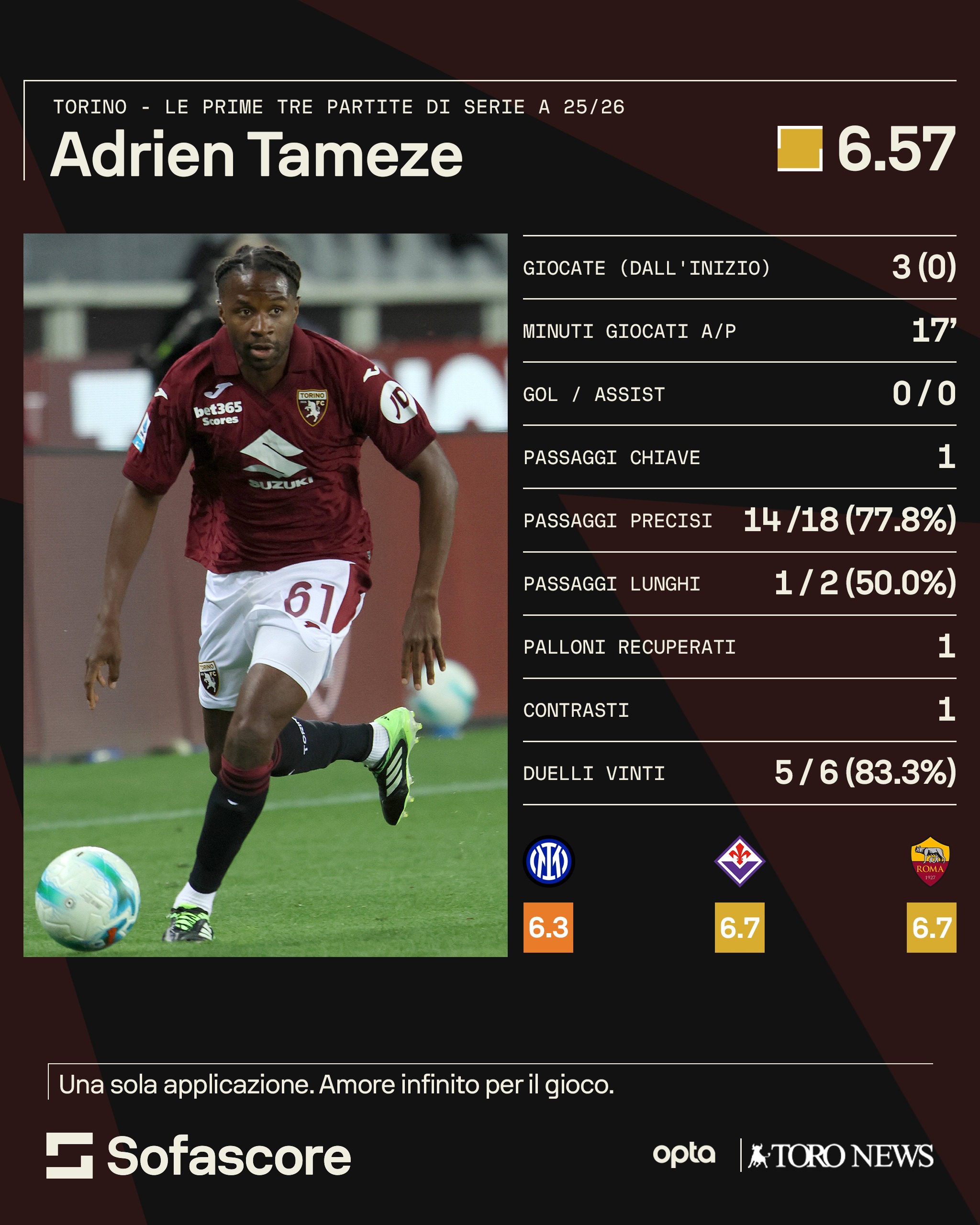 Dopo le prime tre giornate, l'impiego di Tameze ha già superato ogni più rosea aspettativa. Dopo essere stato fortemente voluto da Juric - e da lui molto impiegato -, con Vanoli il francese ha trovato poco spazio e all'inizio di questa stagione sembrava ai margini dell'organico granata. Tuttavia, l'ex Verona si è proposto come alternativa duttile e d'esperienza a Baroni, che sembra aver accettato la proposta e ha regalato al suo centrocampista minutaggio in ognuna delle prime tre gare di Serie A. Dall'altra parte, quello che sembrava essere la rivelazione già ad inizio campionato e che ha giocato da titolare la prima sfida contro l'Inter - stiamo parlando di Emirhan Ilkhan - nella seconda e nella terza di campionato non ha trovato spazio neanche come subentrato. Baroni considera Tameze il sostituto di Asllani? Analizziamo insieme la situazione.