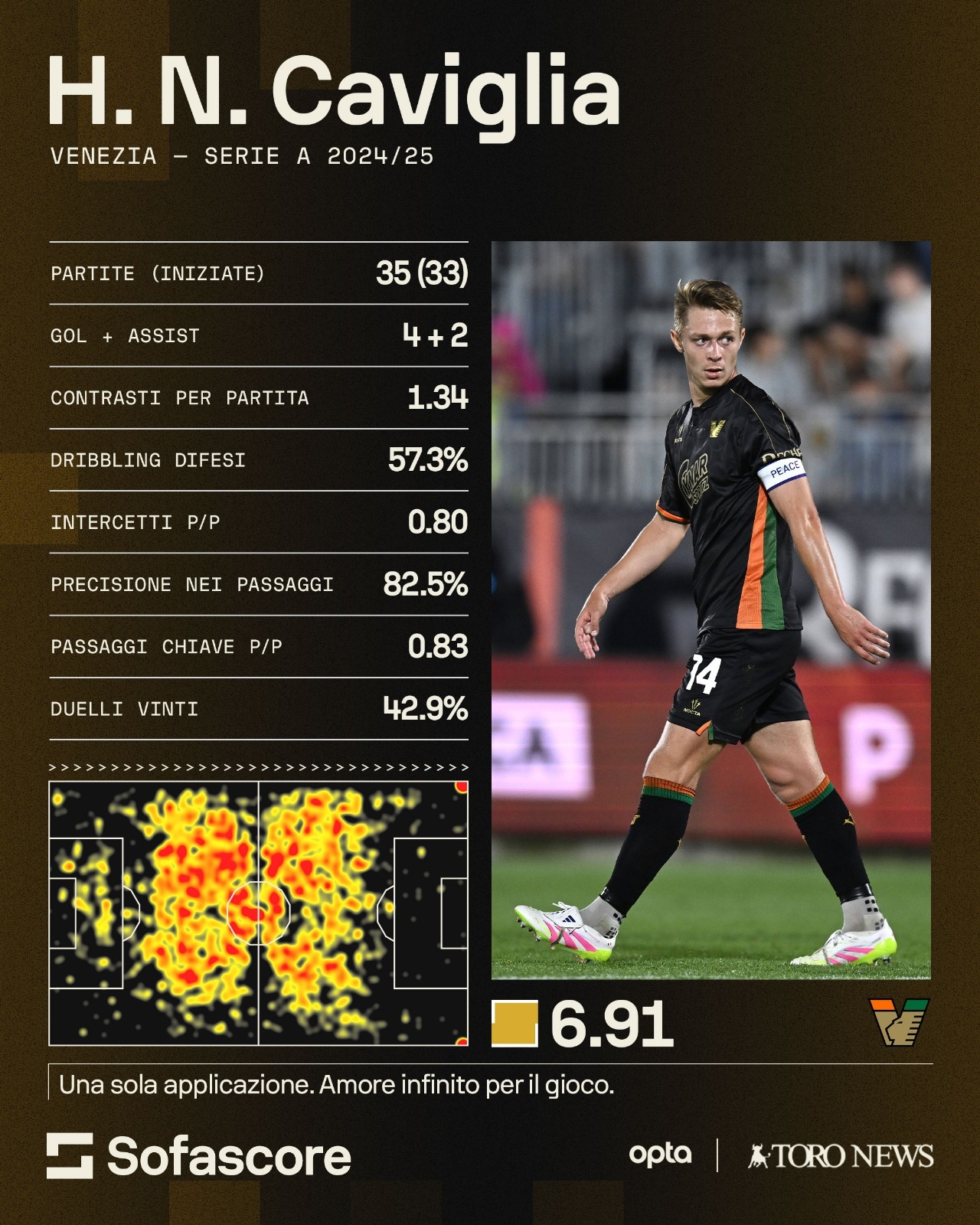 —Con il Torino alla ricerca di un play, esigenza manifestata pubblicamente dopo la gara con il Modena, il nome di Nicolussi Caviglia ha preso quota. Vagnati ha affermato che il giocatore ex Juventus ha caratteristiche che possono essere utili ai granata e la trattativa è in corso. Nicolussi Cavaglia è un centrocampista giovane e di prospettiva. Il classe 2000 è il classico regista, profilo che coincide esattamente con lo slot mancante in granata. Destro di piede, si incarica del possesso e sa offrire un contributo importante. Nell'ultima stagione si è distinto al Venezia per la precisione dei passaggi (82.5%), ma anche per l'apporto al contenimento (57.3% di dribbling difesi) e per passaggi chiave (0.83 a partita).