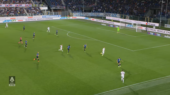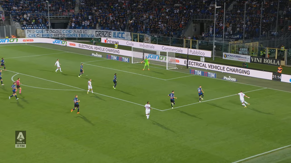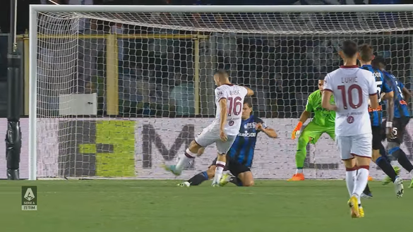 Al centro dell'area c'è proprio Vlasic che dimostra le sue qualità e va a chiudere l'azione ricevendo palla proprio da Pellegri. Il trequartista croato una volta ricevuta la sfera la stoppa col mancino e prova il tiro in fretta prima che arrivi Toloi in scivolata a fermarlo. La conclusione di Vlasic è bella forte e si insacca sotto la traversa non lasciando nessuno scampo al portiere nerazzurro Musso.