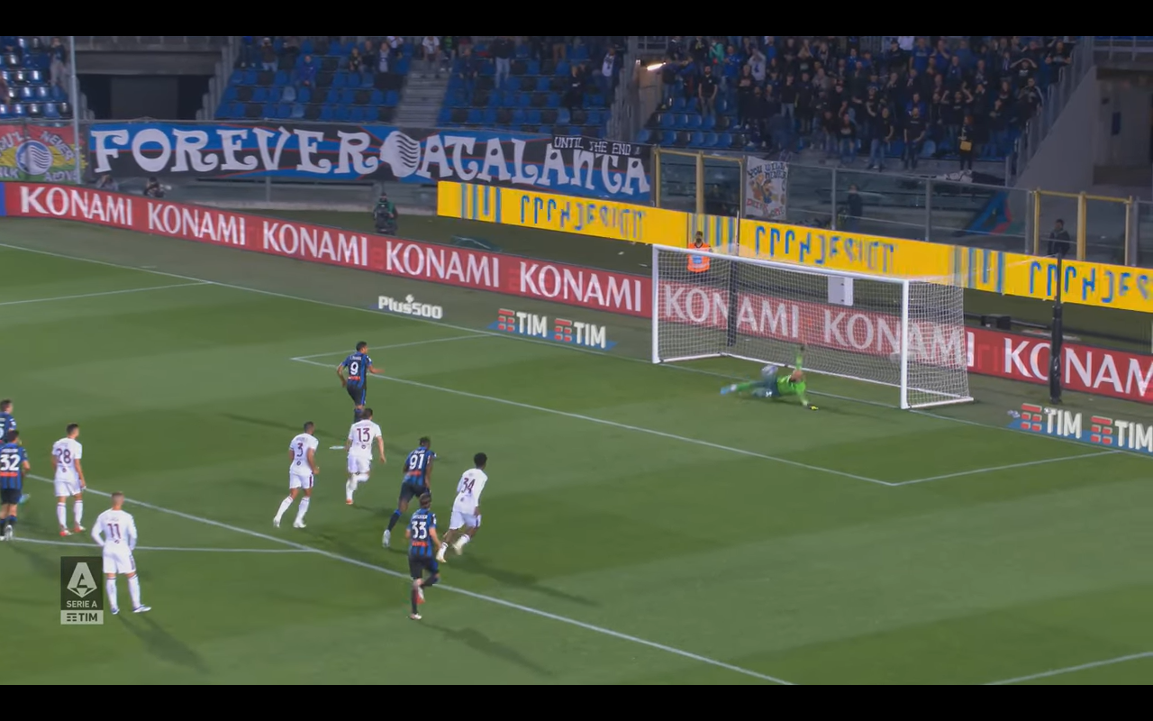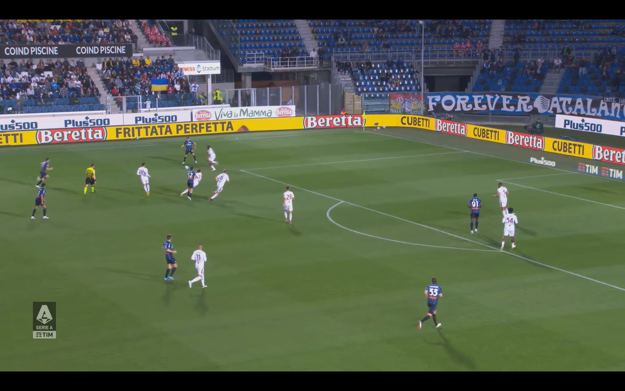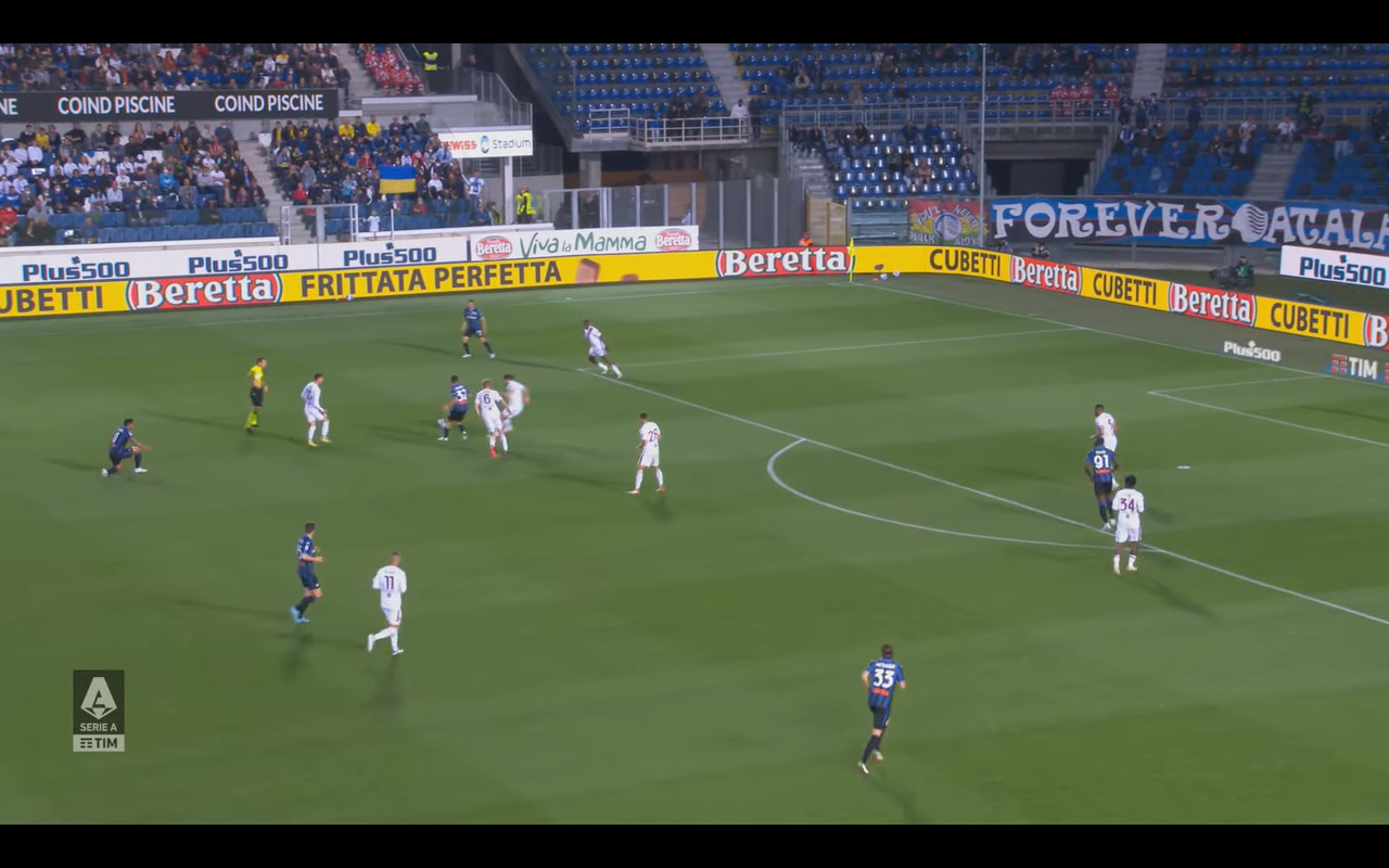 L'azione del pareggio dell'Atalanta viene originata da Muriel che conduce palla nella metà campo del Toro e prima di essere attaccato da Zima e Lukic riesce a servire tra le linee Pessina.