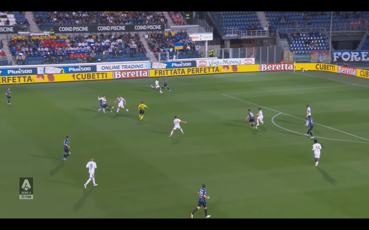 Il trequartista riceve palla in buona posizione e serve subito Zappacosta sulla fascia mancina dal momento che quest'ultimo ha parecchio spazio.
