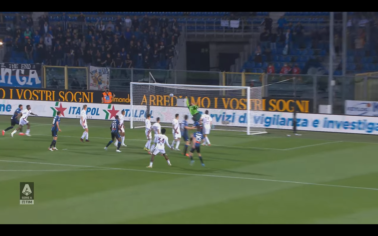 Muriel intuisce questa opportunità e serve De Roon che è libero al limite dell'area di rigore. L'olandese fa partire un gran destro di prima intenzione che sorprende del tutto la difesa granata.