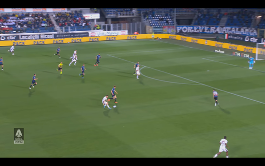 Al 63' minuto il Toro si riporta in vantaggio e a dare il via ad un'azione offensiva dei granata è Praet, come spesso accade. Il numero 22 riceve palla da Lukic sulla trequarti e con una finta di corpo riesce a disorientare bene il suo marcatore che è Scalvini. A questo punto il belga vede il taglio di Pobega verso l'area e lo serve con un filtrante in verticale.