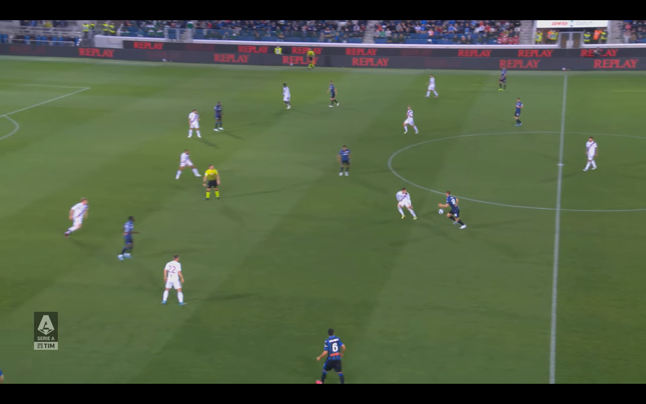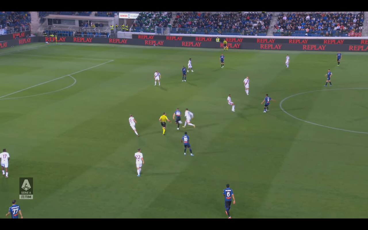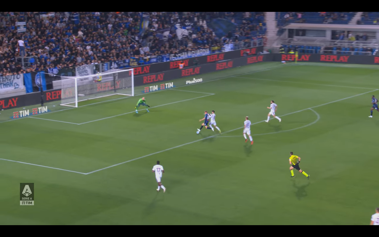 Il colombiano attrae Bremer fuori dalla linea difensiva e serve il taglio davvero rapido del compagno e chiude così l'uno-due che taglia completamente la difesa del Toro, rimasta scoperta centralmente e senza difensori in grado di scalare nei tempi giusti. Se Bremer rimane a metà strada e non riesce a intercettare, anche Zima è lento a capire lo sviluppo dell'azione e non riesce a stringere alla destra del brasiliano. Nel frattempo, Pasalic supera in velocità il diretto avversario, Lukic.