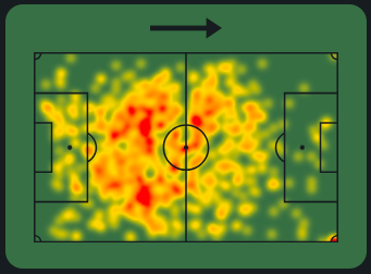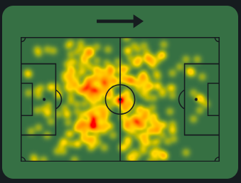Ilkhan è più un regista classico, di quelli che si inserisce davanti alla difesa, pronto a dettare il gioco. Analizzando le statistiche del turco, emerge il profilo di un centrocampista con spiccate doti di costruzione e visione di gioco. Con una precisione dell'84% nei passaggi totali, che sale al 91% nella propria metà campo, dimostra grande pulizia tecnica nella gestione del possesso. Il dato sui lanci lunghi (79% di precisione) evidenzia una capacità non comune di verticalizzare con efficacia. (Heatmap di Ilkhan sotto).