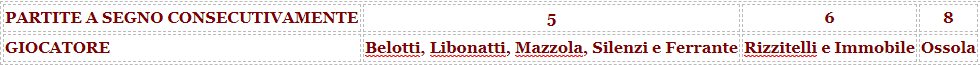 LA CLASSIFICA - Sono soltanto tre i giocatori della storia del Torino ad essere riusciti a fare meglio del Gallo: Ruggiero Rizzitelli (nel 1995) e Ciro Immobile (nel 2014) con sei partite consecutive a segno e Franco Ossola con otto (nel 1948, quando però la Serie A non era ancora il moderno torneo a tre punti a vittoria). Numeri che testimoniano l'ottimo momento attraversato da Belotti, capace di segnare in fila a Udinese, Cagliari, Lazio, Juventus. Nessuno ha fatto meglio di lui in Serie A dalla ripresa del campionato, mentre l'unico in grado di eguagliarlo nello stesso filotto di partite è stato Cristiano Ronaldo della Juventus.