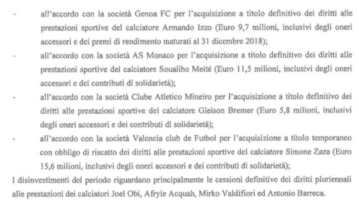 LEGGI ANCHE: Bilancio Torino 2018, stop alle plusvalenze da record: 55,9 milioni in meno rispetto al 2017