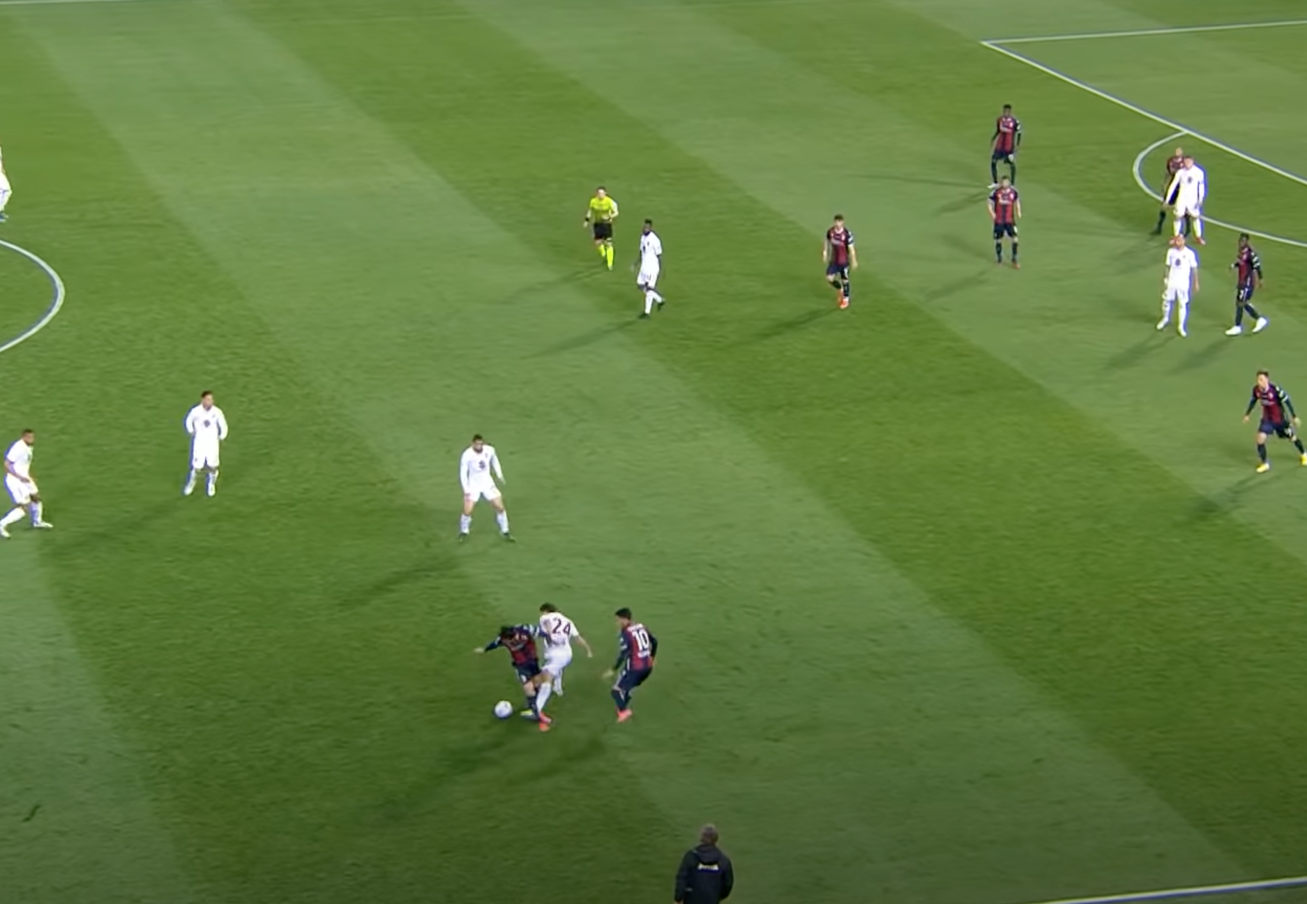 Il gol del vantaggio è caratterizzato da una serie di errori dietro l'altro. Il primo a sbagliare è l'arbitro Mariani, che non vede un mani di Orsolini in area (QUI la moviola).Il Toro recupera subito il possesso e Verdi sulla trequarti ha la possibilità di imbastire una nuova azione offensiva, ma si intestardisce in un dribling di troppo e - in mezzo a due - viene fermato da Soriano.