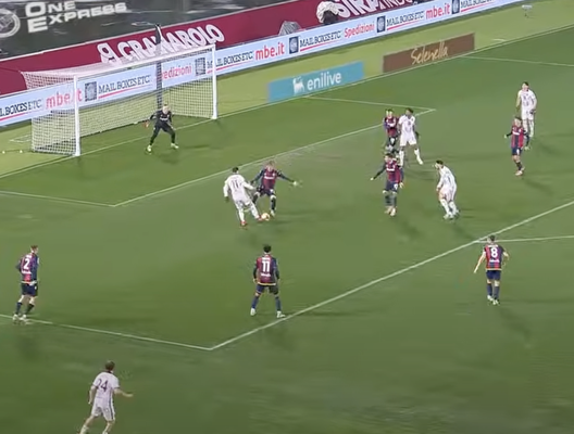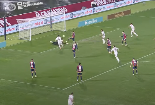 Il croato cross di prima intenzione in direzione Che Adams. Elmas fa sfilare la palla per lo scozzese che di prima serve l'ex Napoli.