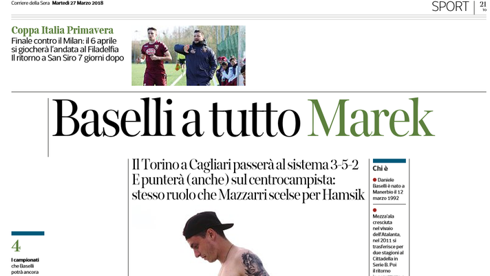 OCCHIO A BARELLA - Nel ruolo di mezzali dovrebbero agire Barella e Ionita, due ottimi elementi sia in fase di copertura che in fase di spinta. Per la giovane stella dei sardi questa è stata una stagione straordinaria, 25 presenze con un bottino di 5 gol in campionato per un giocatore che cresce di partita in partita e che è già finito nel mirino dei top club europei. Dopo la sospensione di Joao Pedro, per uso di sostanze dopanti, Barella è anche diventato il rigorista dei rossoblu. Buona anche la stagione del moldavo Ionita, già 27 le sue presenze e due i suoi assist. Un giocatore a cui il Toro dovrà stare molto attento sui calci piazzati, visto che si tratta di un ottimo colpitore di testa.