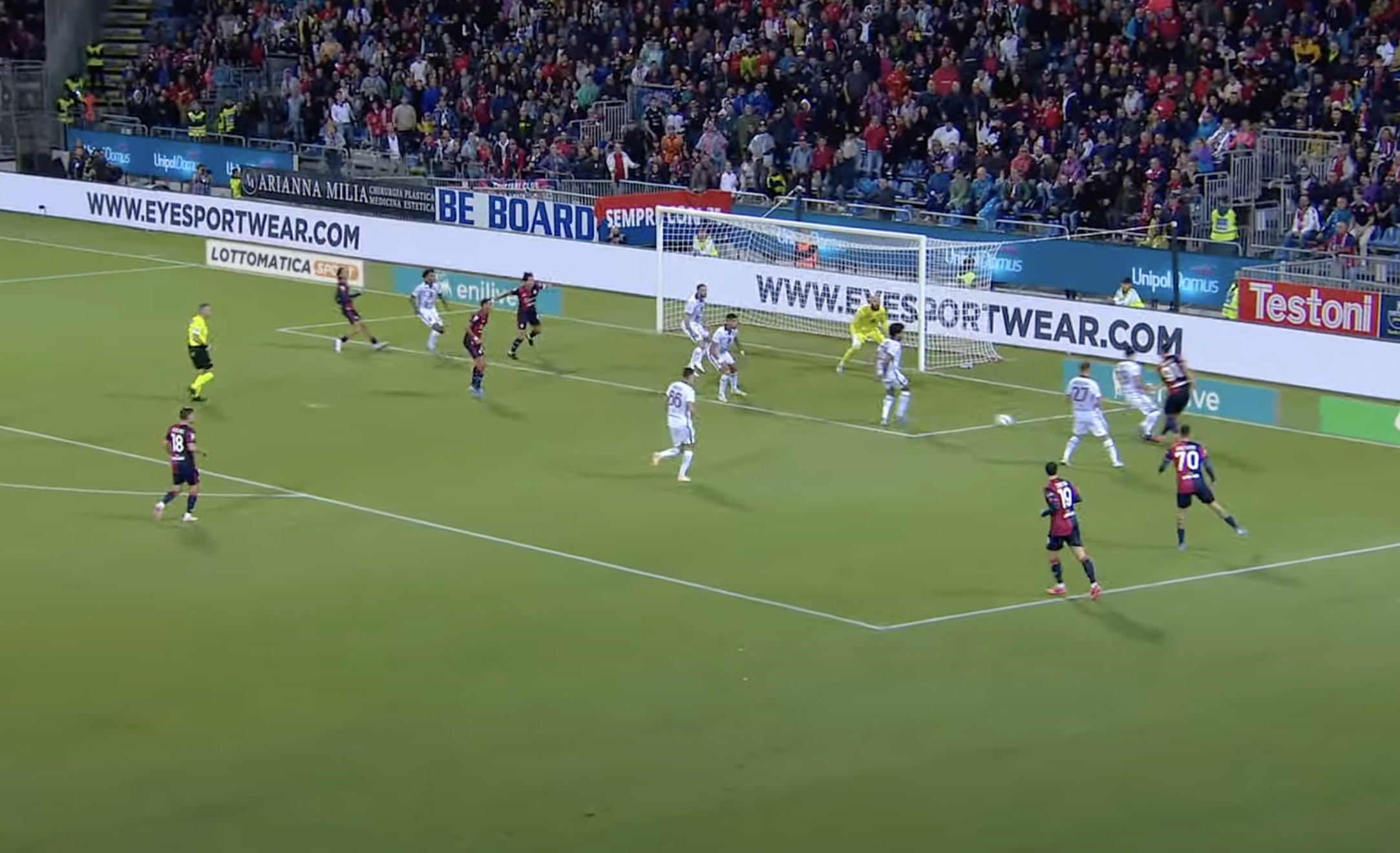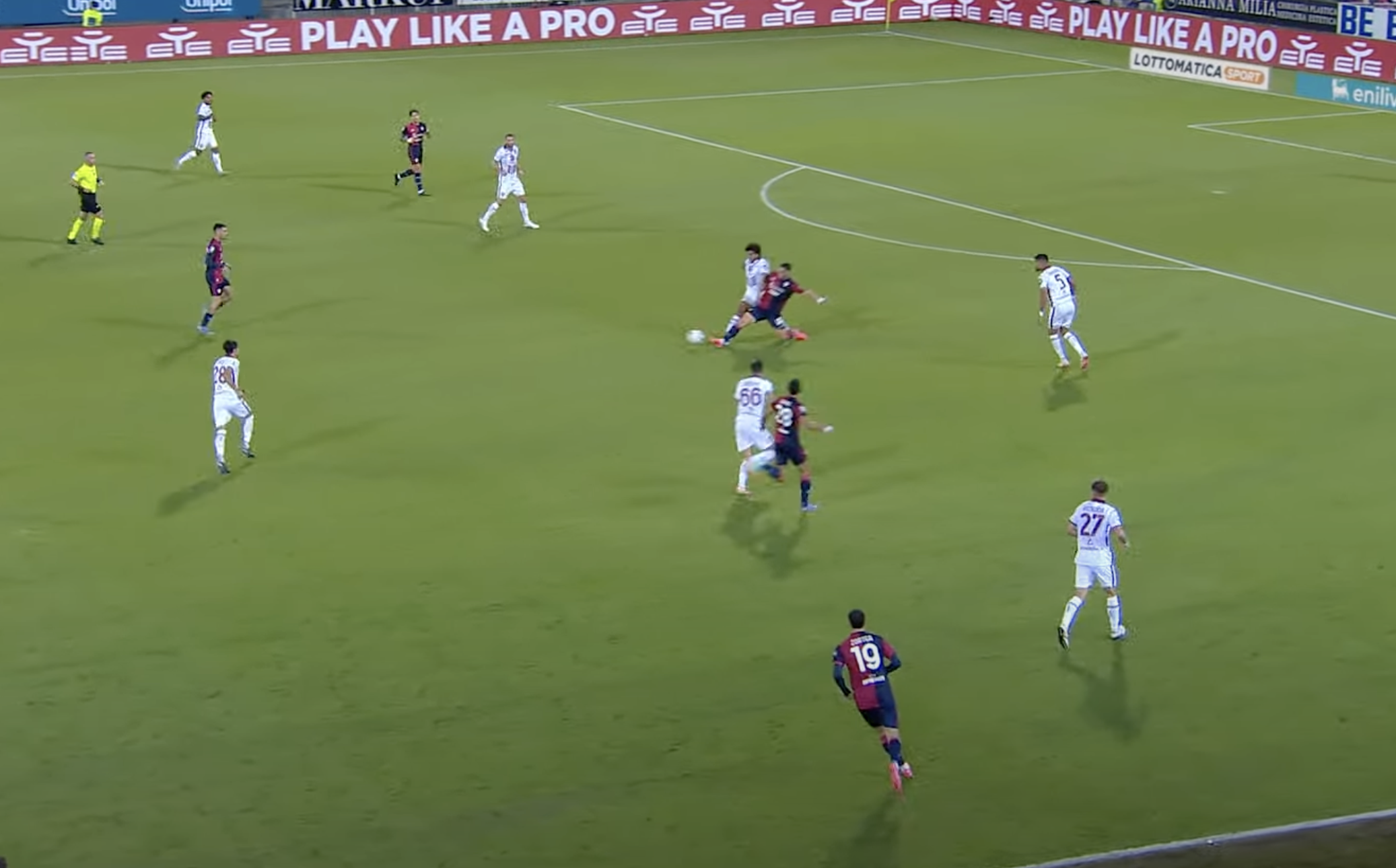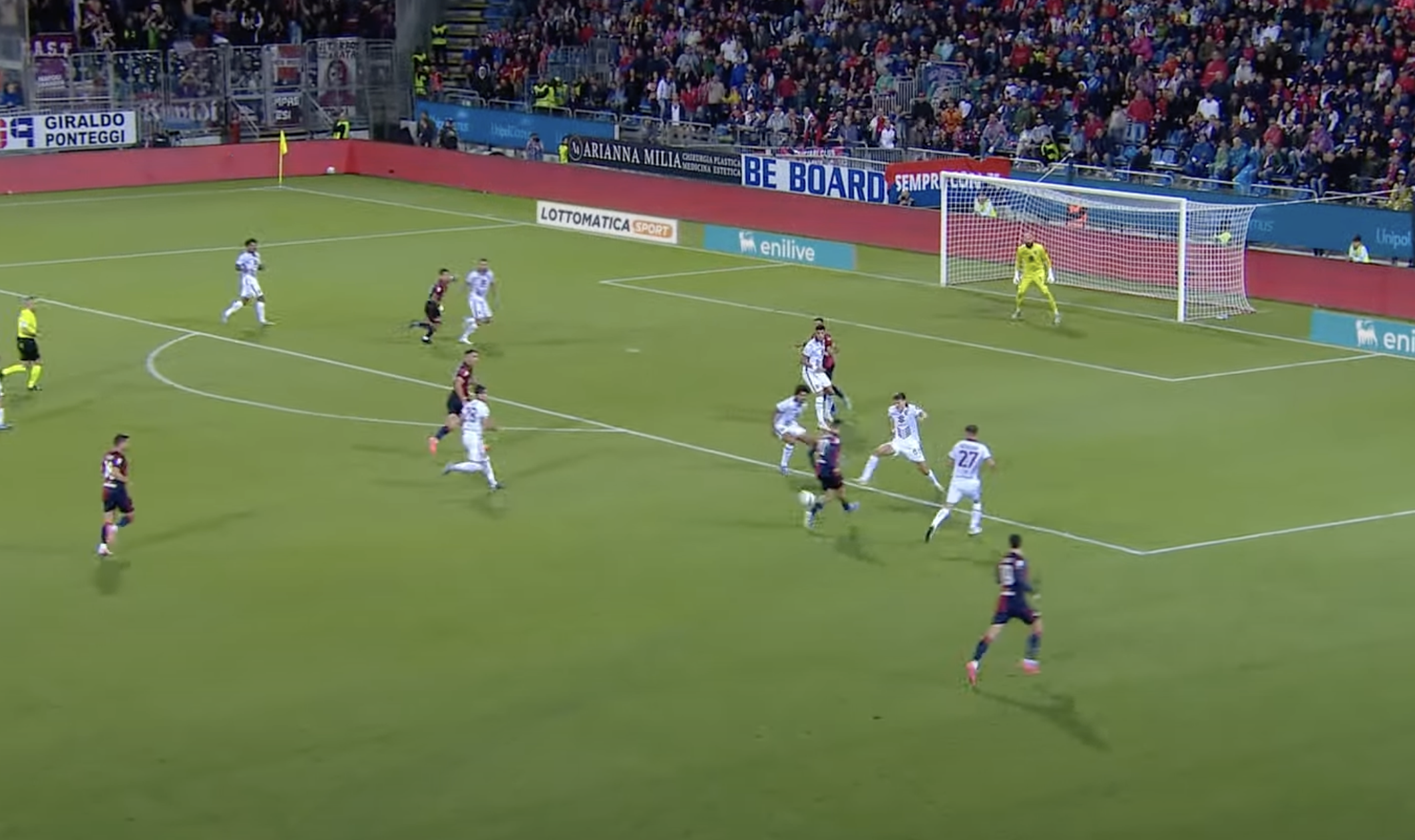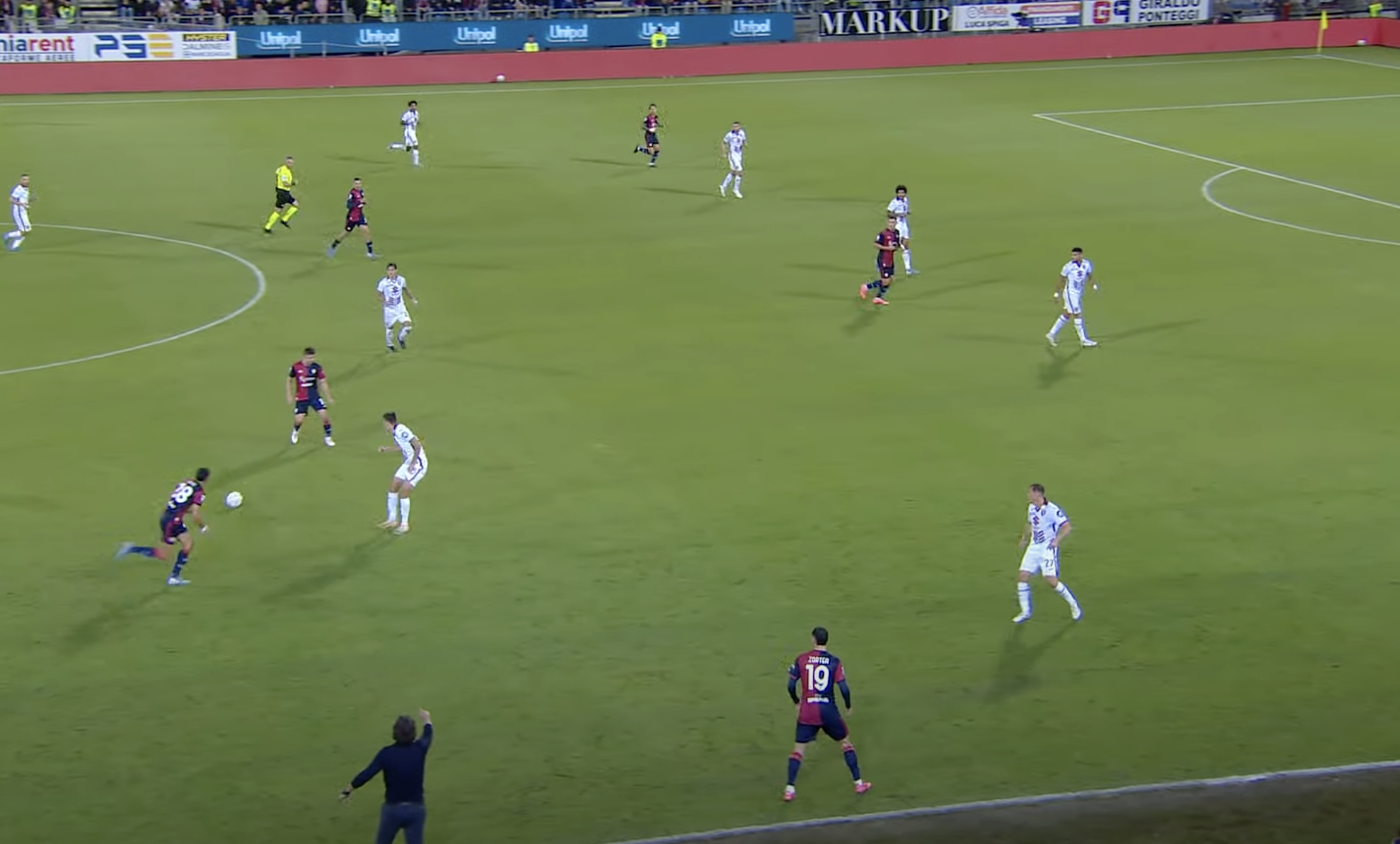 Il Cagliari trova subito il contro sorpasso. Tutto nasce dalla destra. Zappa appoggia centralmente e corre sulla verticale.