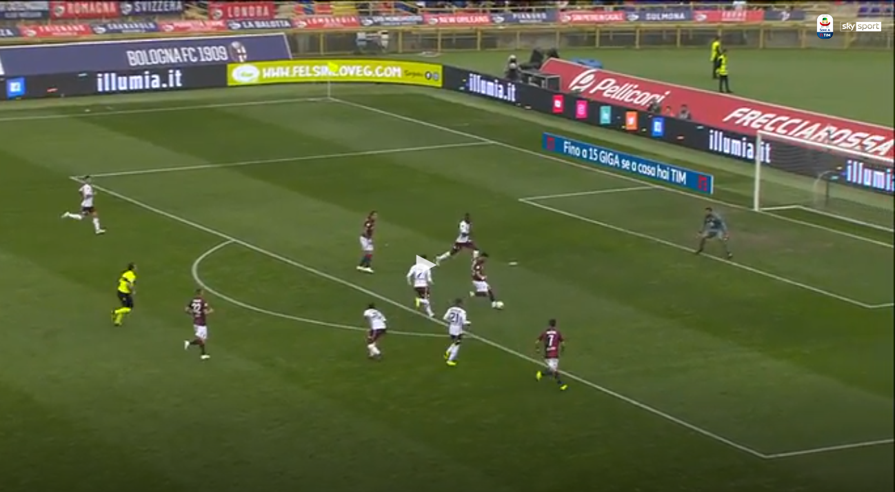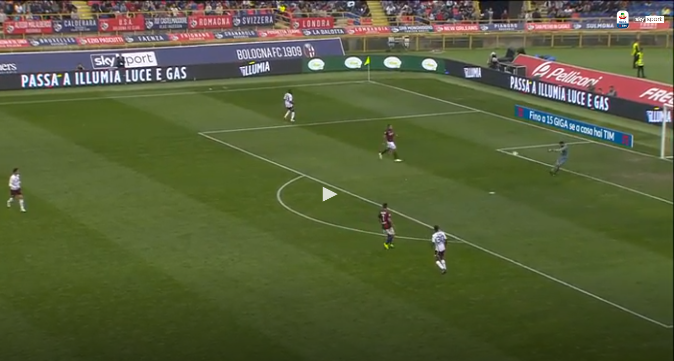 Al 32' della ripresa arriva il pareggio del Bologna, ed è un gol che fa discutere per la catena di errori che lo causa. Nkoulou fa un retropassaggio a Sirigu, che esegue un rinvio troppo corto e nella zona centrale del campo. Errore quindi di imprudenza del portiere granata, che per cercare Berenguer esegue un passaggio troppo rischioso.