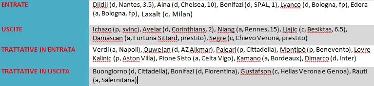 Il tabellone in entrata registra l'arrivo di Laxalt, mentre per Ujkani manca solo l'ufficialità. Quello in uscita vede invece alcune trattative concluse.