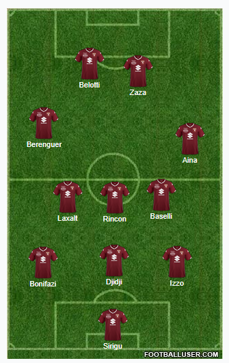 Questa al momento la formazione tipo del Torino, al netto degli infortuni e con il nuovo arrivato Laxalt subito a disposizione del tecnico granata. Il modulo scelto è il 3-5-2, con la coppia d'attacco composta da Belotti e Zaza.