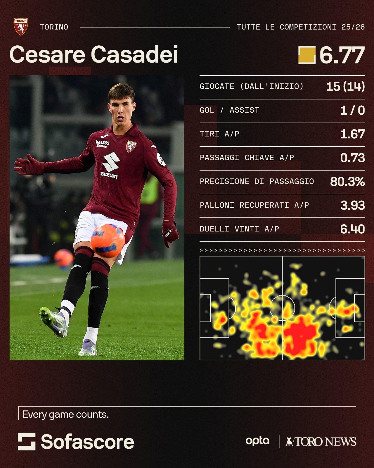 —La flessione è preoccupante, soprattutto con gli occhi dello scorso gennaio, quando il Torino riuscì a imporsi nella telenovela di mercato che aveva coinvolto anche la Lazio. Si può forse dire di essere in ritardo sulla tabella di marcia. Non si parla infatti ancora di un punto di riferimento, ma di un ragazzo che deve ancora costruire le proprie certezze per poi trasferirle anche alla guida tecnica. Nell’abitudinaria staffetta estiva di calciomercato, Casadei non ha ancora raccolto il testimone di Samuele Ricci, come centrocampista italiano di grande prospettiva. Un problema per la squadra, per lui – che si sta allontanando a vista d’occhio dalla Nazionale – ma anche per la società, che nell’ex Inter e Chelsea vede un asset per una probabile plusvalenza e ora avverte il peso di quei 13 milioni investiti.
