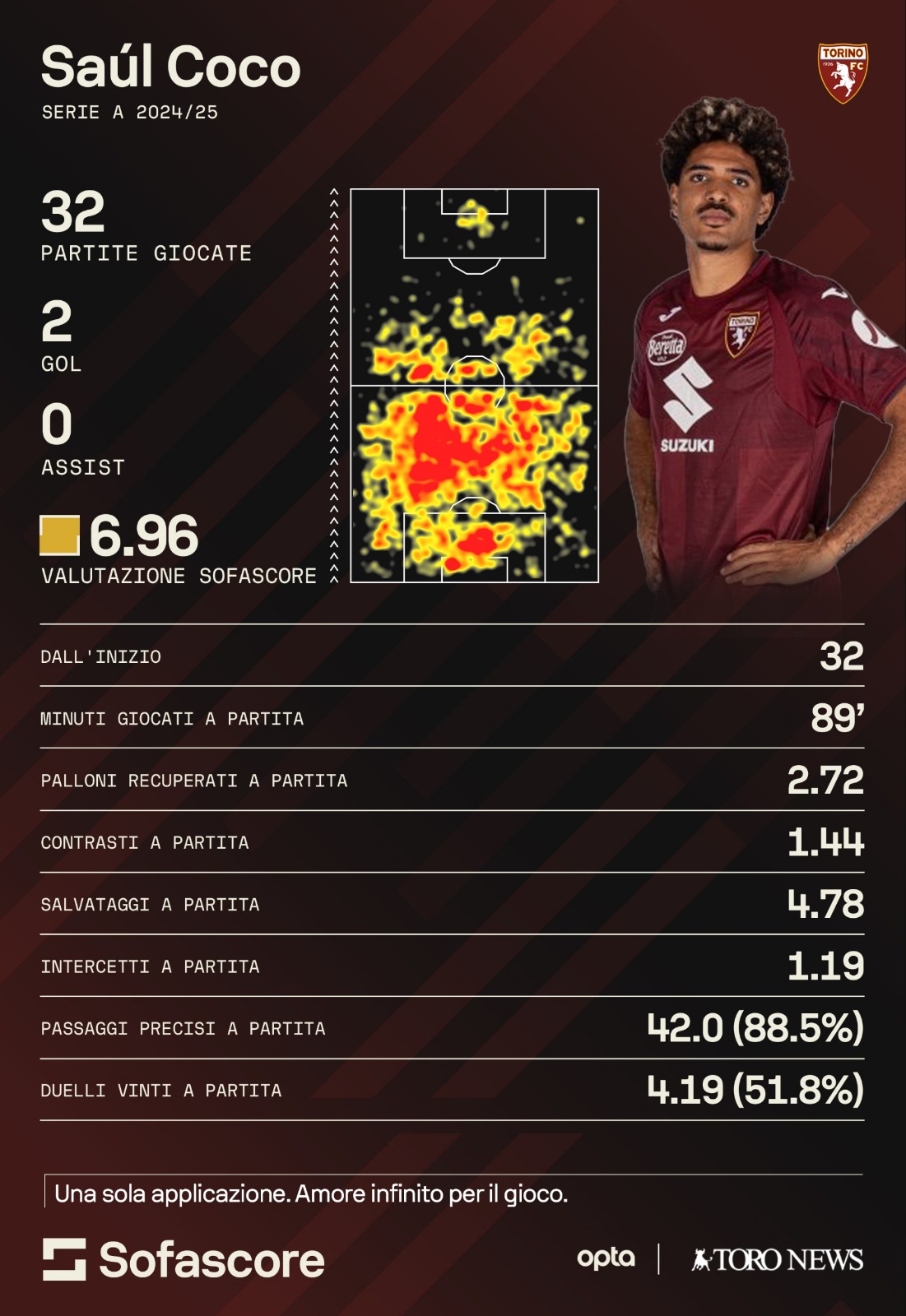 In pochi, forse, in quel periodo a cavallo tra la gara col Venezia e la sosta per le nazionali, avrebbero immaginato che, nel gruppo di chi non avrebbe soddisfatto le aspettative, si sarebbe iscritto anche Saul Coco. Colpa, forse, di quell’inizio roboante – fin dal ritiro di Pinzolo – a cui si aggiungono le buone prestazioni contro Milan e Atalanta e la girata al volo contro la Lazio. Poi, però, si è visto un Coco insicuro e, spesso, pasticcione. Gli errori più eclatanti? Il gol divorato accartocciandosi su sé stesso contro il Napoli e l’assist involontario per il pareggio del Genoa a Pinamonti, passando di fatto il pallone agli avversari. Due immagini difficili da cancellare. Per questo, la prima annata di Coco in Serie A può essere considerata parecchio controversa.