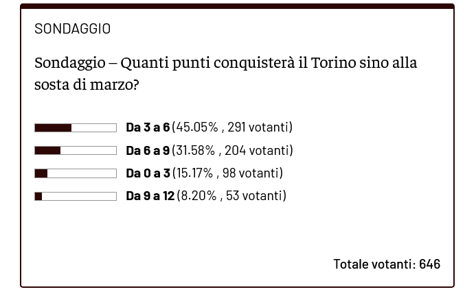 Dopo la sconfitta contro il Bologna abbiamo chiesto a voi lettori una stima su quanti punti faranno i granata nelle prossime quattro gare