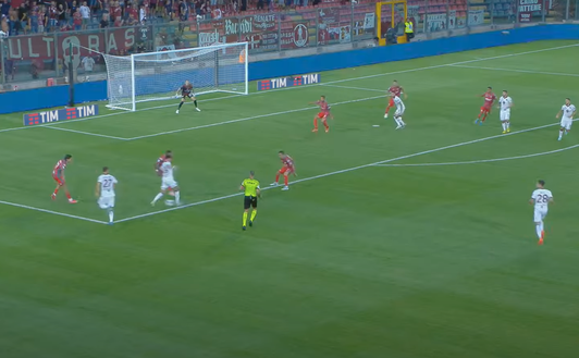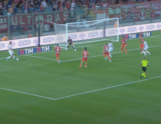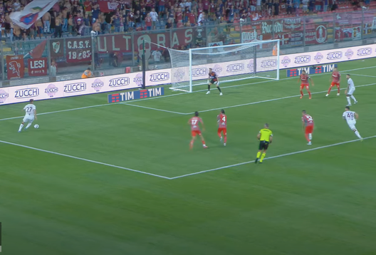Vojvoda trova un ottimo primo controllo che gli permette di seminare Sernicola, con un tocco si allunga quanto basta la sfera e si prende il fondo, con la possibilità di alzare la testa e vedere il posizionamento dei compagni.
