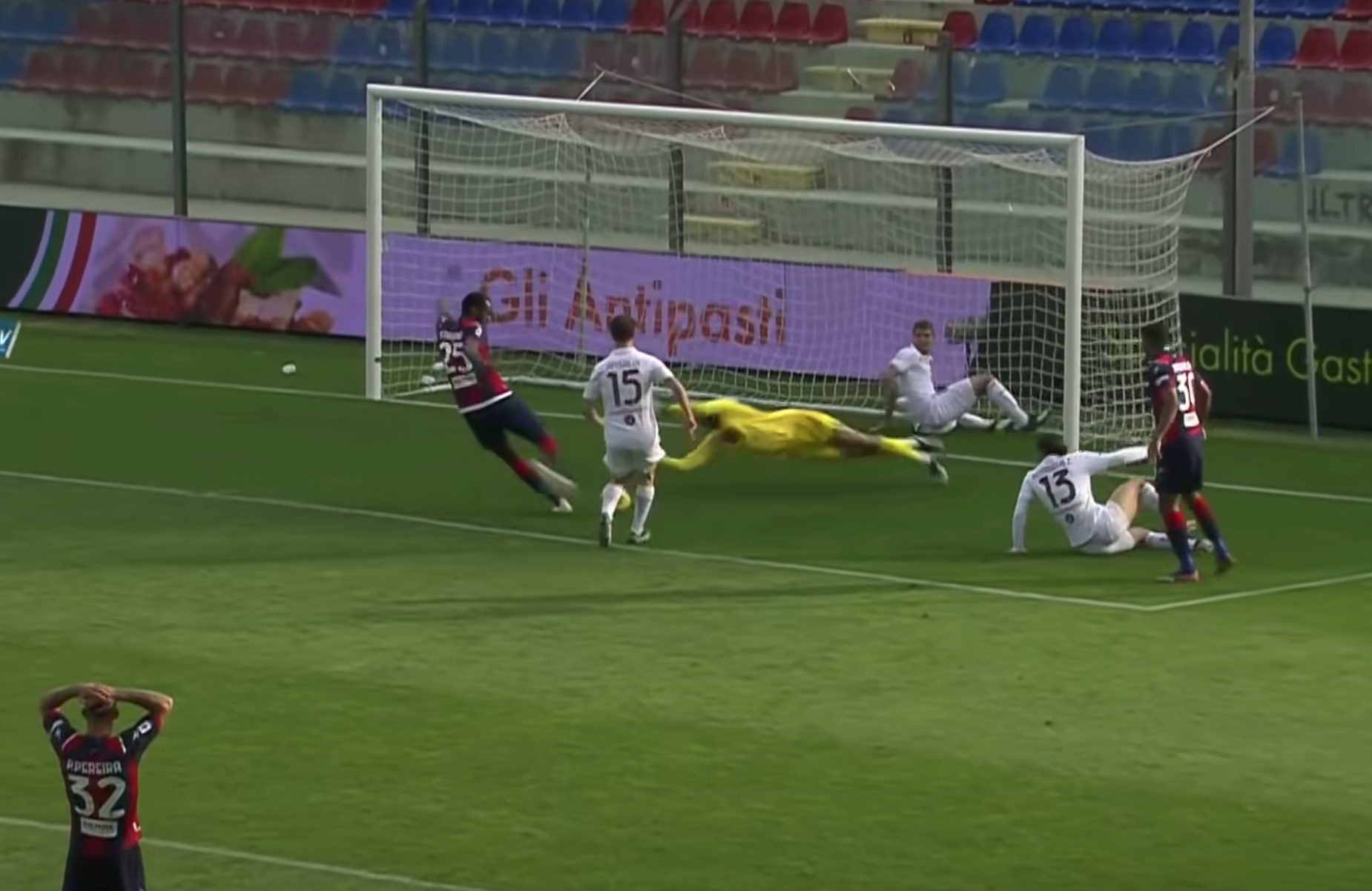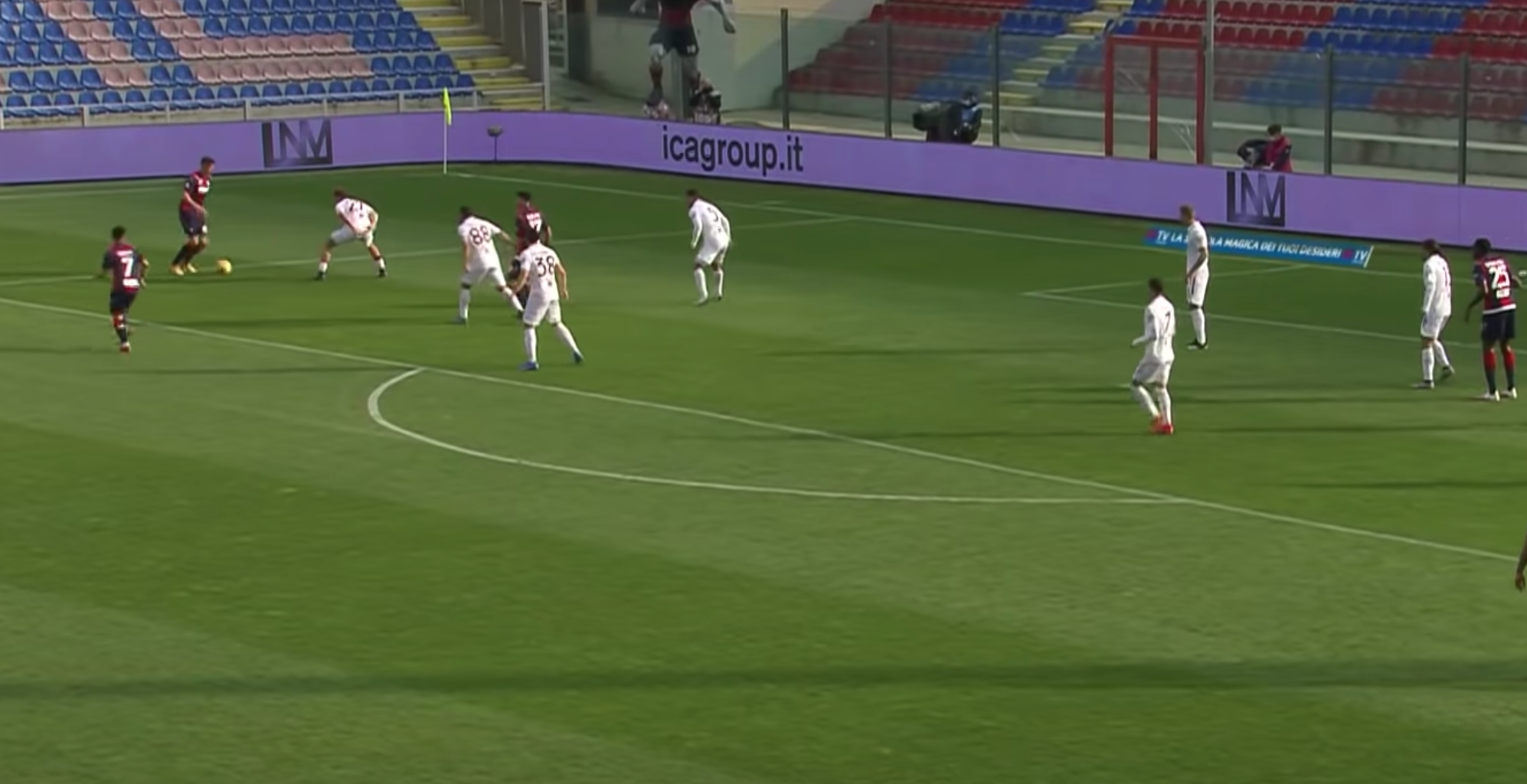 Il centrocampista dei pitagorici va al tiro, che viene deviato da un granata e la palla sbatte sul palo. Occhio però alla scarsa attenzione difensiva del Torino. I granata sono tutti focalizzati sulla palla e sul secondo palo rimane il solo Ansaldi contro 3 giocatori del Crotone.