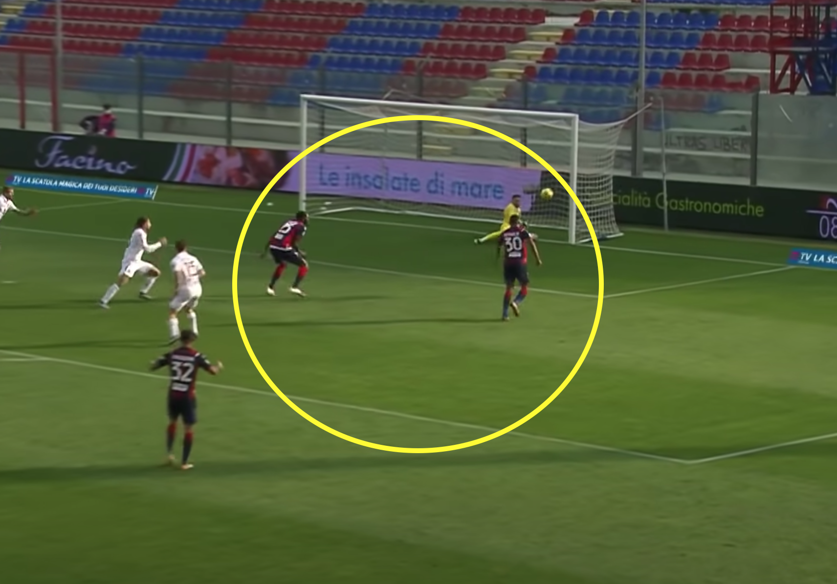 La sfera arriva precisa sui piedi di Simy che deve solamente ribadire in rete. Nessuno dei granata era andato a disturbare l'attaccante dei pitagorici.