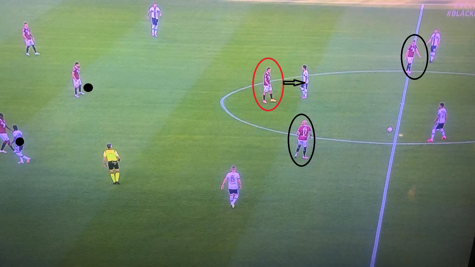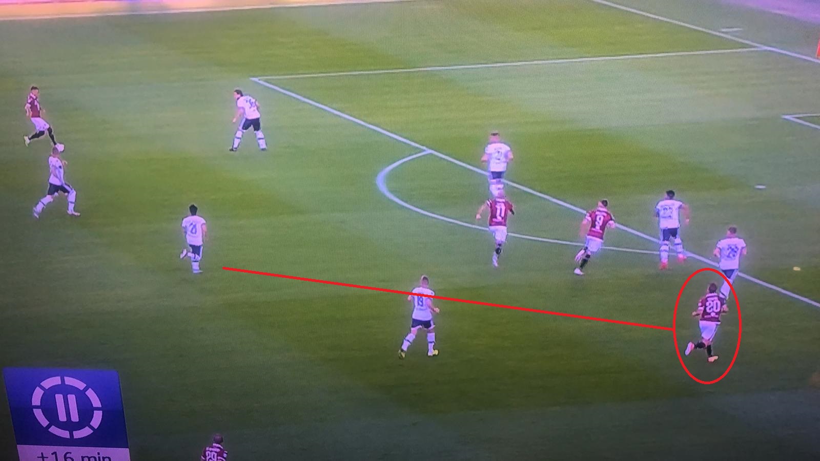 SENZA PALLA - Quando il pallino del gioco era in mano al Parma, il Toro si schierava infatti con un 3-4-1-2. E proprio Edera andava a ricoprire il ruolo di trequartista atipico, chiamato soprattutto ad un ruolo di marcatura. Come si può notare dall'immagine, il numero venti granata gravitava infatti nelle zone dell’emiliano Scozzarella, per impedire al Parma di passare dal proprio regista. Una soluzione che consentiva anche di dare un maggiore apporto al centrocampo, con Rincon e Meité che, di conseguenza, evitavano di trovarsi in inferiorità numerica.