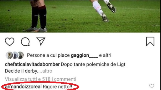 Il più attivo su Instagram è stato senza dubbio Izzo. Il difensore del Torino ha prima commentato il post della pagina "chefaticalavitadabomber", che celebrava il primo gol in Serie A di De Ligt, ricordando: "Rigore netto!!". Il riferimento è al tocco di mano in area di rigore dell'ex Ajax, che nel primo tempo avrebbe potuto indirizzare il match a favore del Torino. Proprio a questo si appella Izzo anche nel post pubblicato sul proprio profilo: "Ripartiamo da questa prestazione e da questo spirito! Con il rigore sarebbe stata un’altra partita!".
