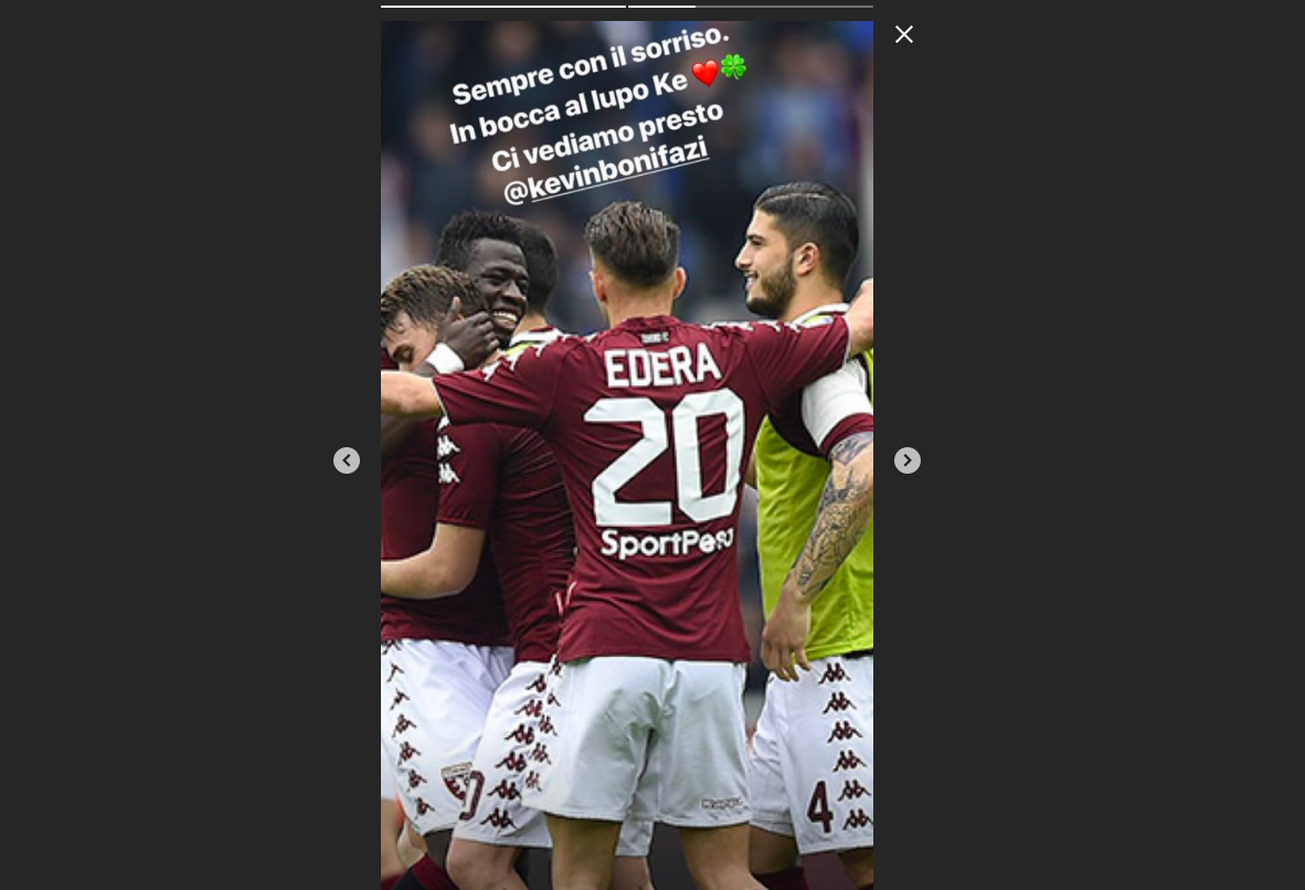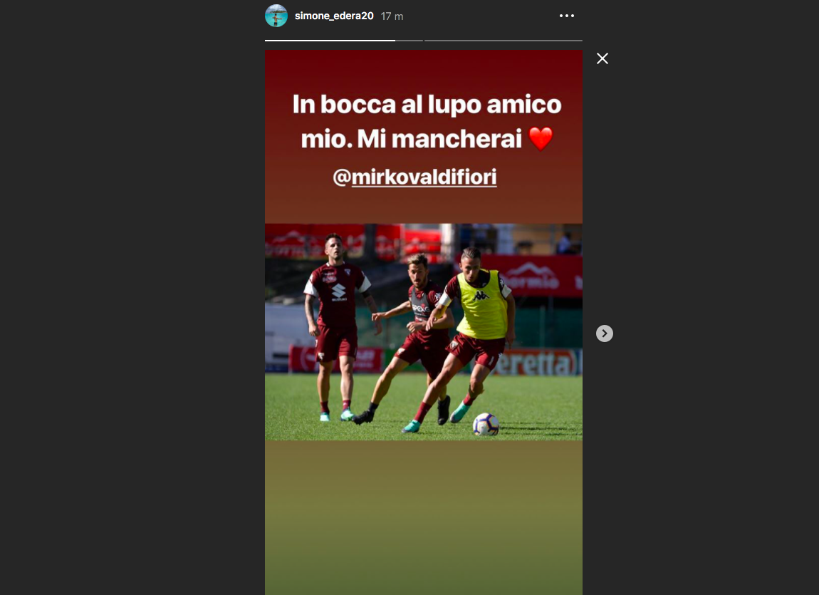 Che quello del Torino fosse un gruppo unito non era di certo un segreto. Ora che ha perso due pedine importanti nello spogliatoio come Valdifiori e Bonifazi (che hanno definito il trasferimento alla SPAL), lo si comprende ancora di più. Ancora prima dell'ufficialità dell'operazione, sul suo profilo instagram, Simone Edera ha voluto salutare e dare il proprio in bocca al lupo ai due (quasi) ex compagni. "Sempre con il sorriso. In bocca al lupo Kevin, ci vediamo presto!" questo il messaggio per Kevin Bonifazi, con quel 'ci vediamo presto' che fa riferimento ad un'amicizia che continua fuori dal campo ma anche alla sicurezza di un ritorno in granata del difensore. "In bocca al lupo amico mio. Mi mancherai": questo invece il pensiero rivolto a Valdifiori, che lascia il Torino a titolo definitivo e dice addio alla maglia granata dopo due stagioni all'ombra della Mole.