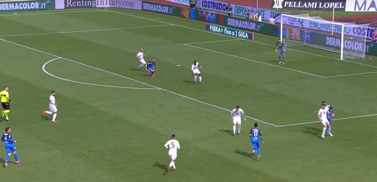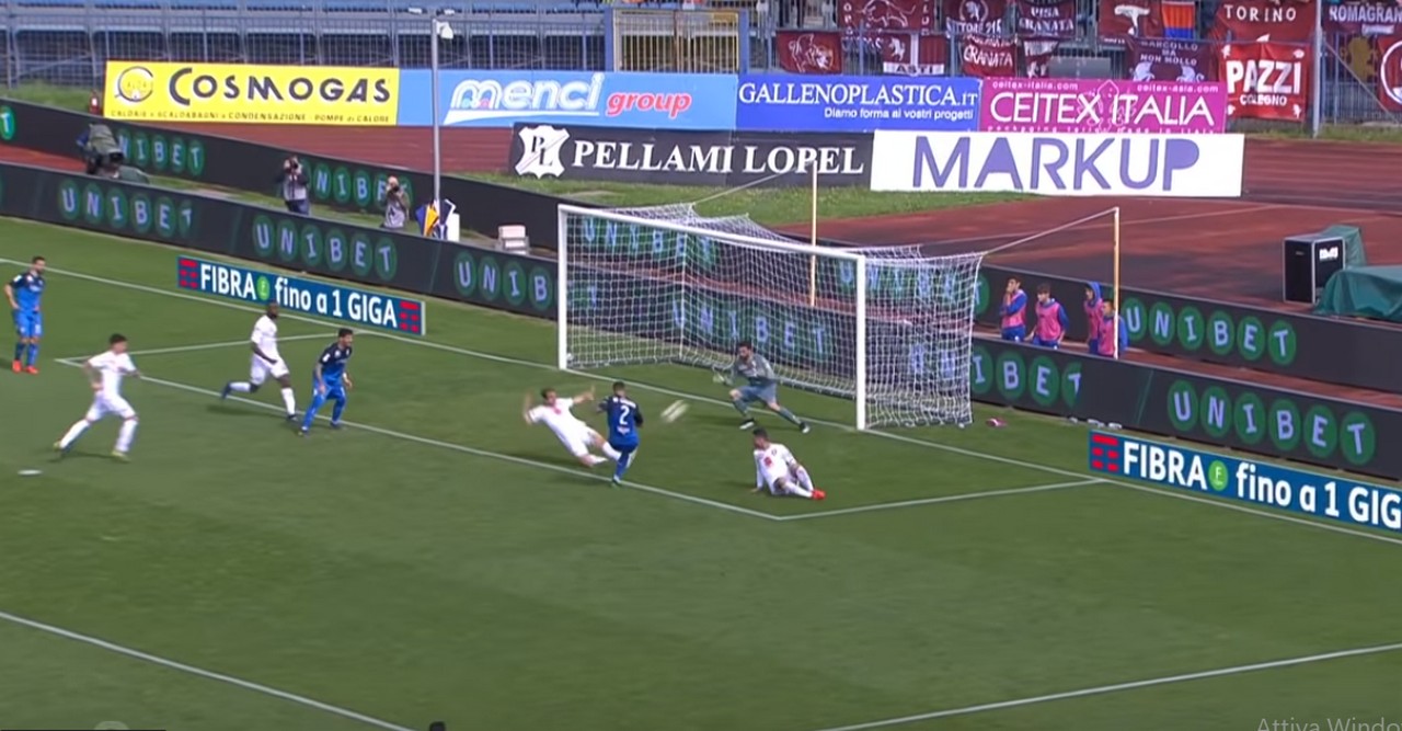 Pajac ha tempo di controllare e alzare la testa servendo dall'altra parte Di Lorenzo che è completamente libero: la difesa granata perde le misure, totalmente mal piazzata, e lascia sguarnito il lato sinistro. Izzo prova a buttarsi alla disperata ma l'esterno destro, quasi in area piccola, è freddo e bravo tecnicamente: lo evita portandosi la palla sul sinistro e fredda Sirigu sotto la traversa.