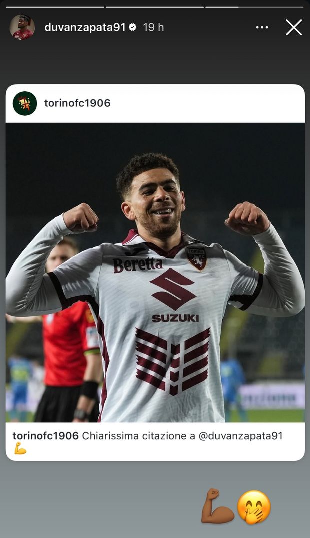 Il capitano granata Duvan Zapata ha apprezzato la dedica che il compagno di reparto Che Adams gli ha fatto nei festeggiamenti del gol che ha deciso la partita. Sul proprio profilo Instagram Zapata ha risposto allo scozzese pubblicando una storia che mostra la sua l’esultanza. A seguire il post di Zapata su Instagram.