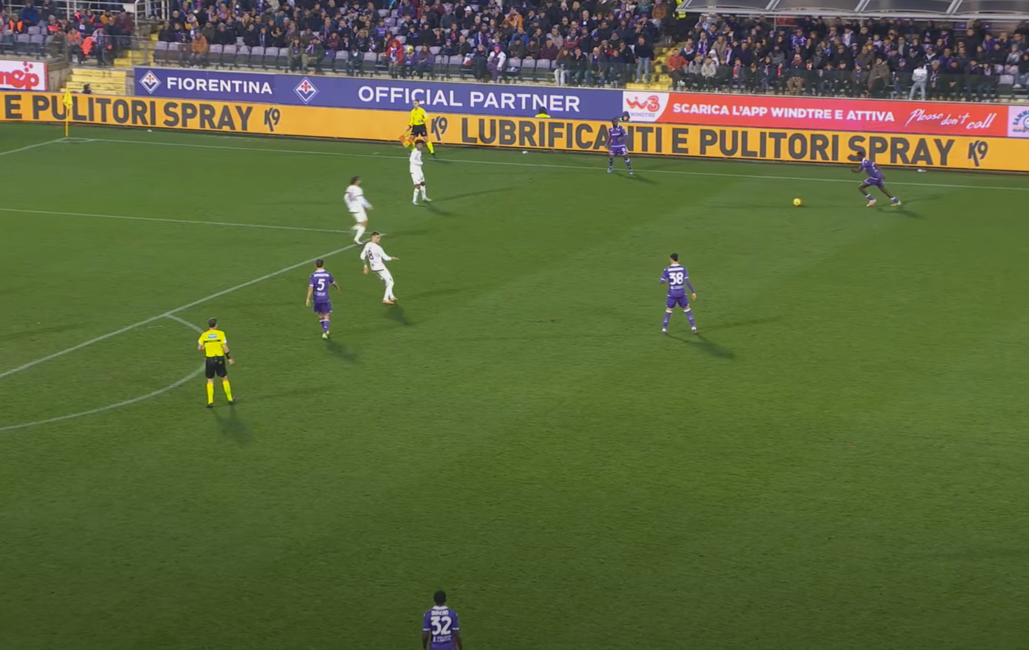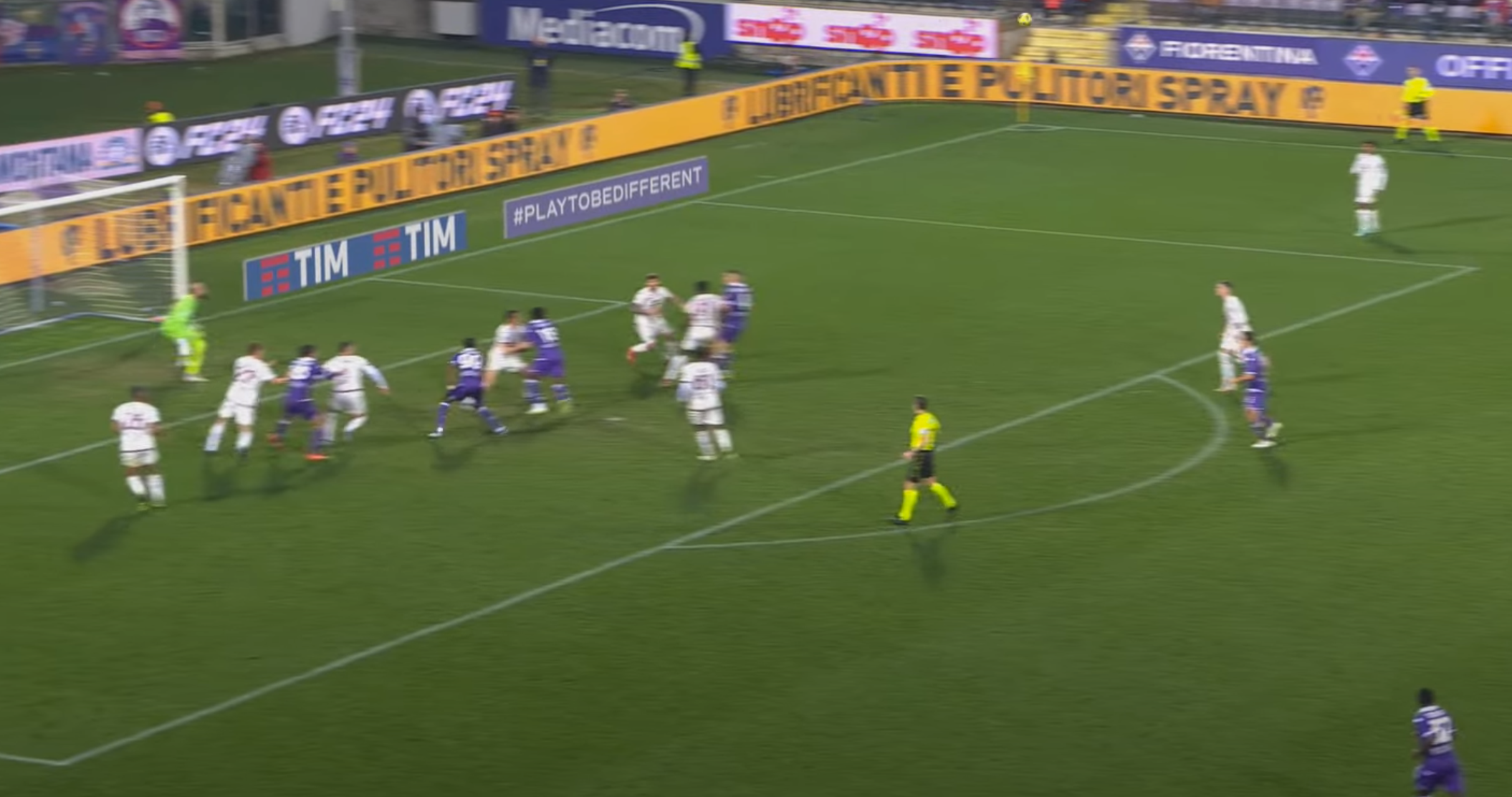 La Fiorentina al minuto 83 effettua una serie di cross che vengono respinti dalla difesa granata. All'ennesimo tentativo la palla arriva a destra a disposizione di Kayode, che viene lasciato liberissimo (e non è la prima volta durante la partita, visto che spesso si è ritrovato solissimo). Il laterale ha tutto il tempo di stoppare, prendere la rincorsa e calciare.