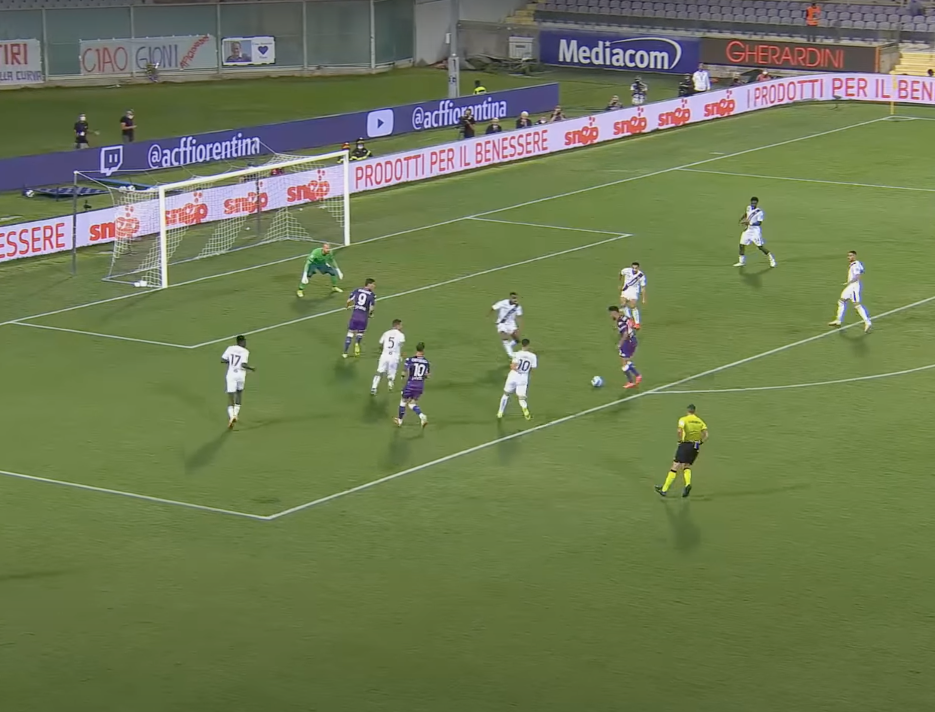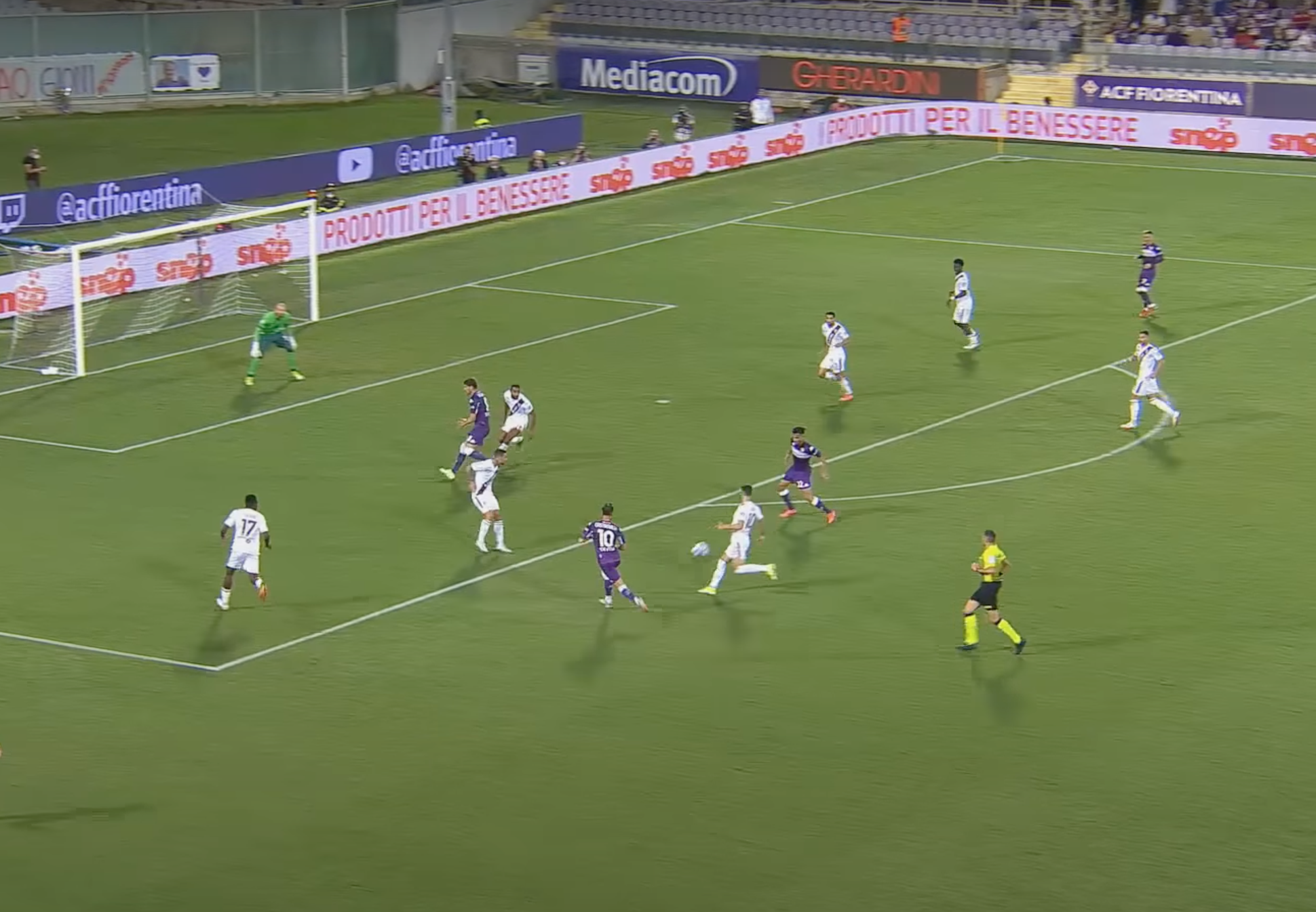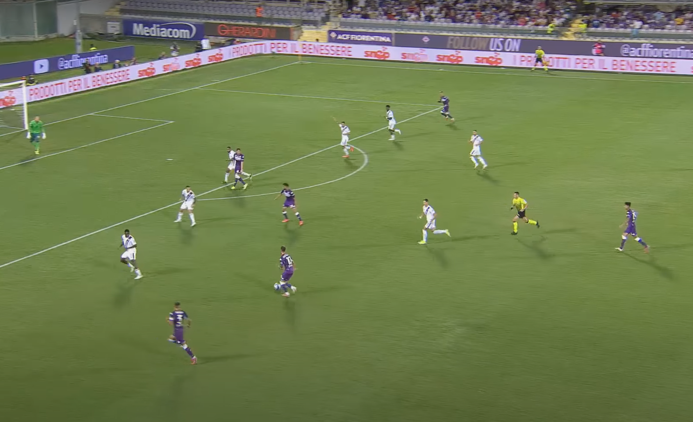 Il risultato è che il 10 della Viola arrivato quasi al limite dell'area scarica totalmente indisturbato per Nico Gonzalez, che è completamente libero, essendosi staccato dalla marcatura di Izzo per ricevere palla (Immagine 2).