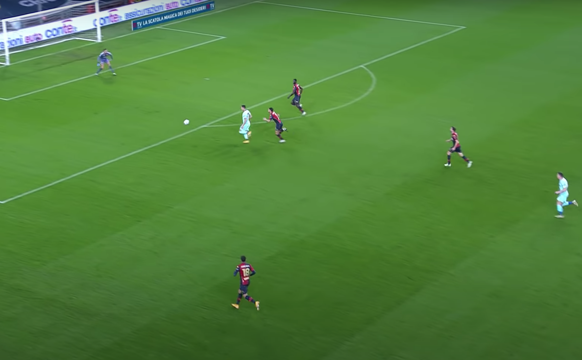 Il terzino sardo prova a imbucare subito per Lukic, il lancio è leggermente sbagliato, ma ci mette ancora una volta lo zampino Goldaniga, che di testa spizza e favorisce il trequartista serbo.