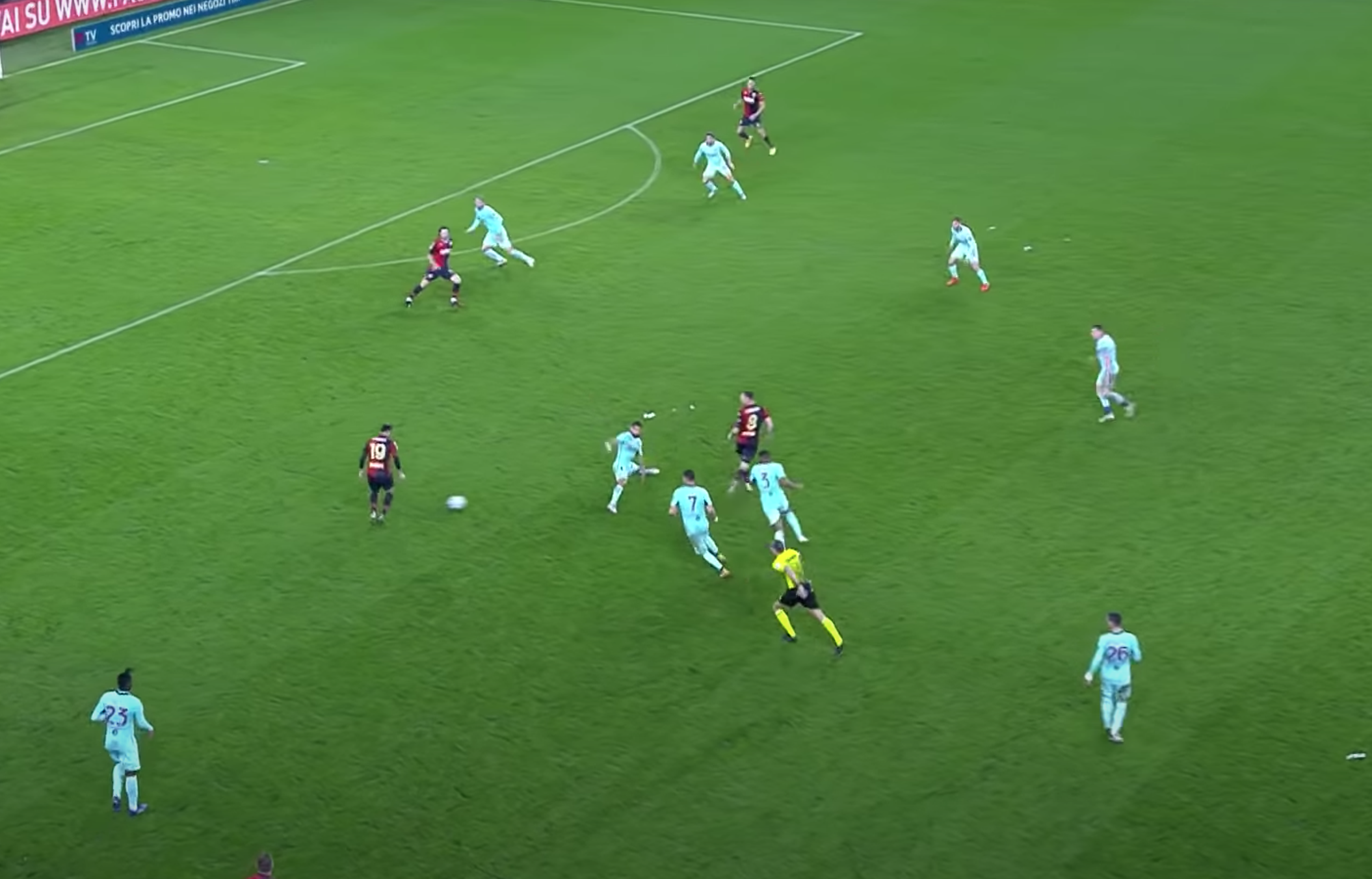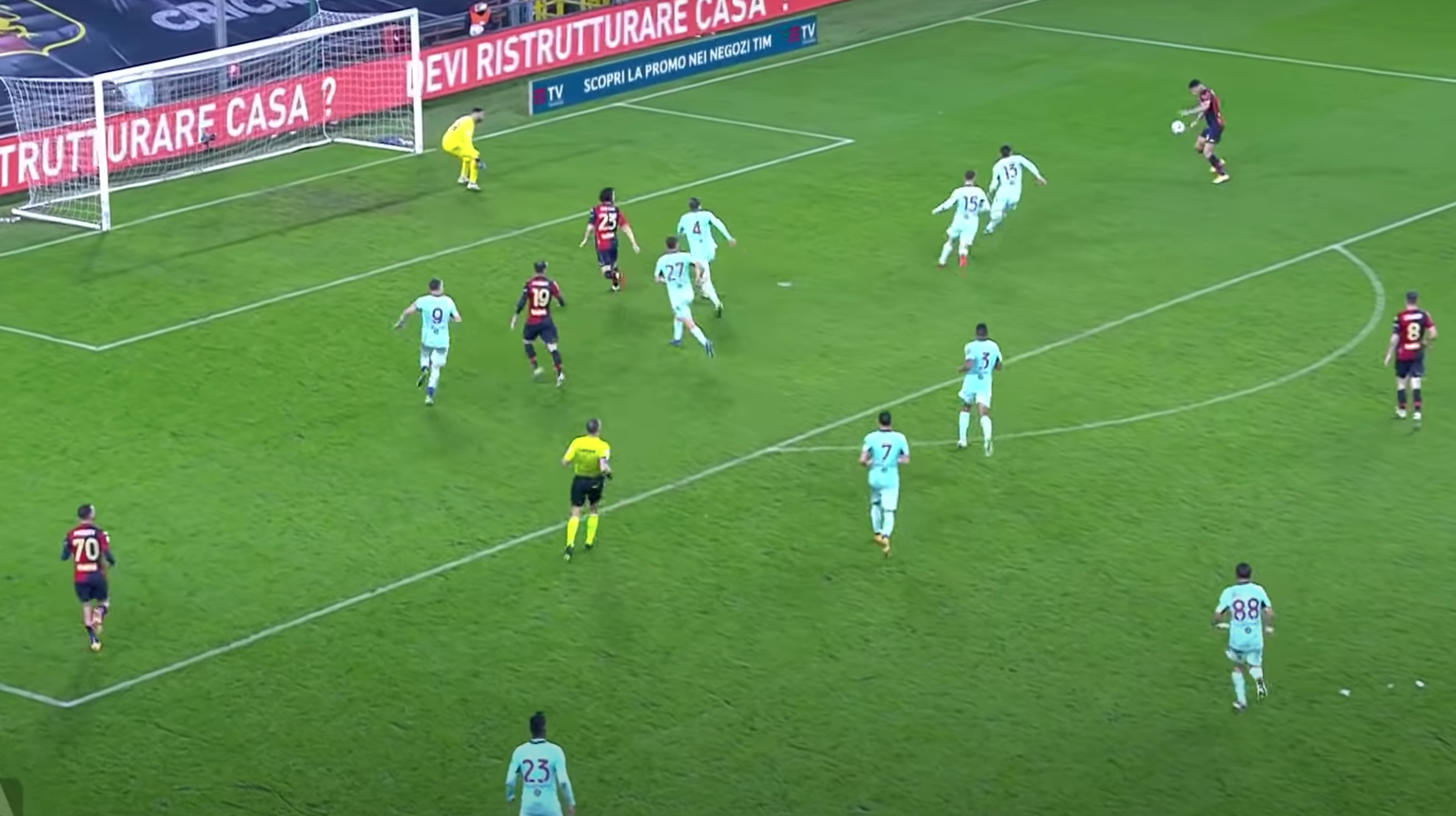 Nel finale il Genoa accorcia le distanze e fa vivere un minuto di fuoco al Torino. Lerager serve Pandev, che viene contrastato da Bremer, ma sul rimpallo si avventa ancora Lerager che a sua volta ridà la palla all'attaccante macedone tra le linee.